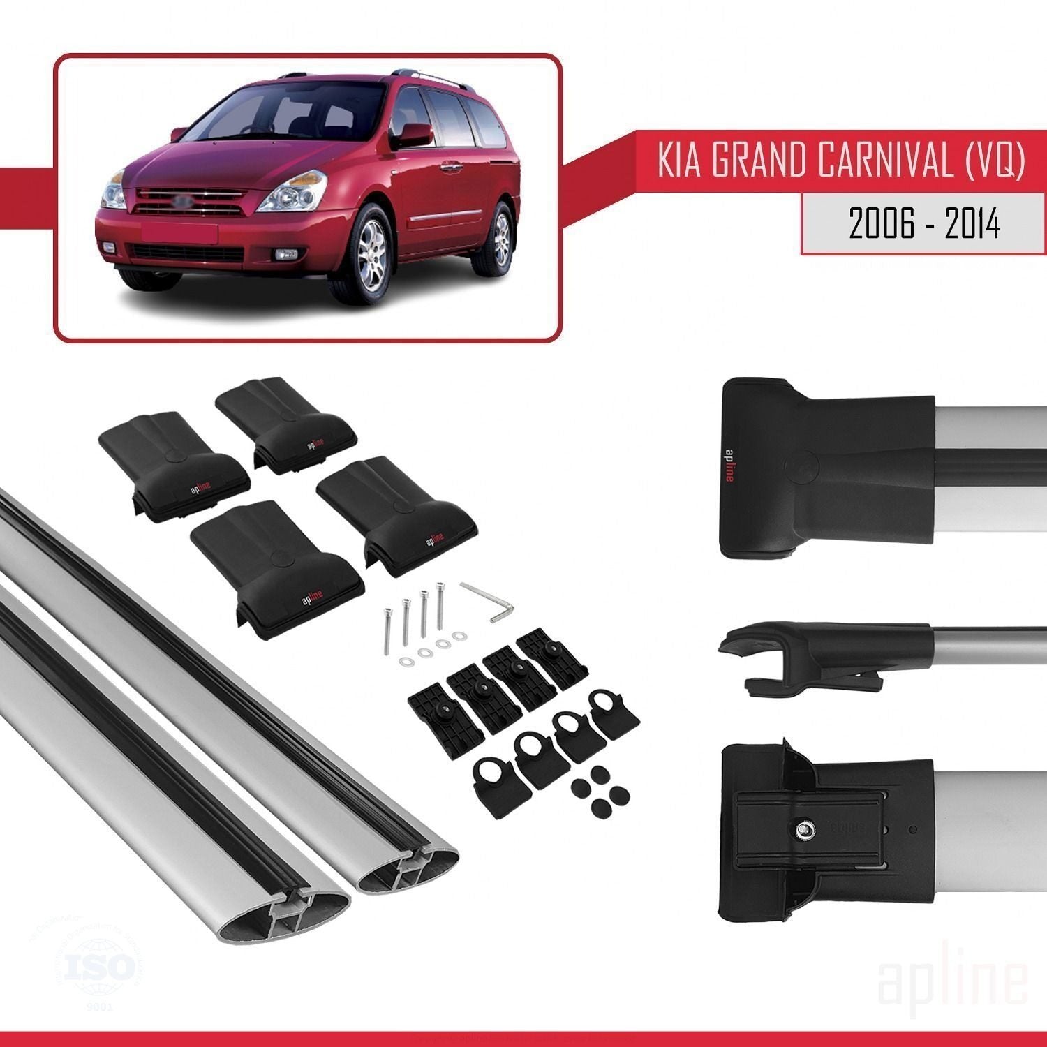 Compatible avec Kia Grand Carnival 2 (VQ) 2006-2014 FLY Model Barres de Toit Railing Porte-Bagages de Voiture Gris Aluminium 2 Barres