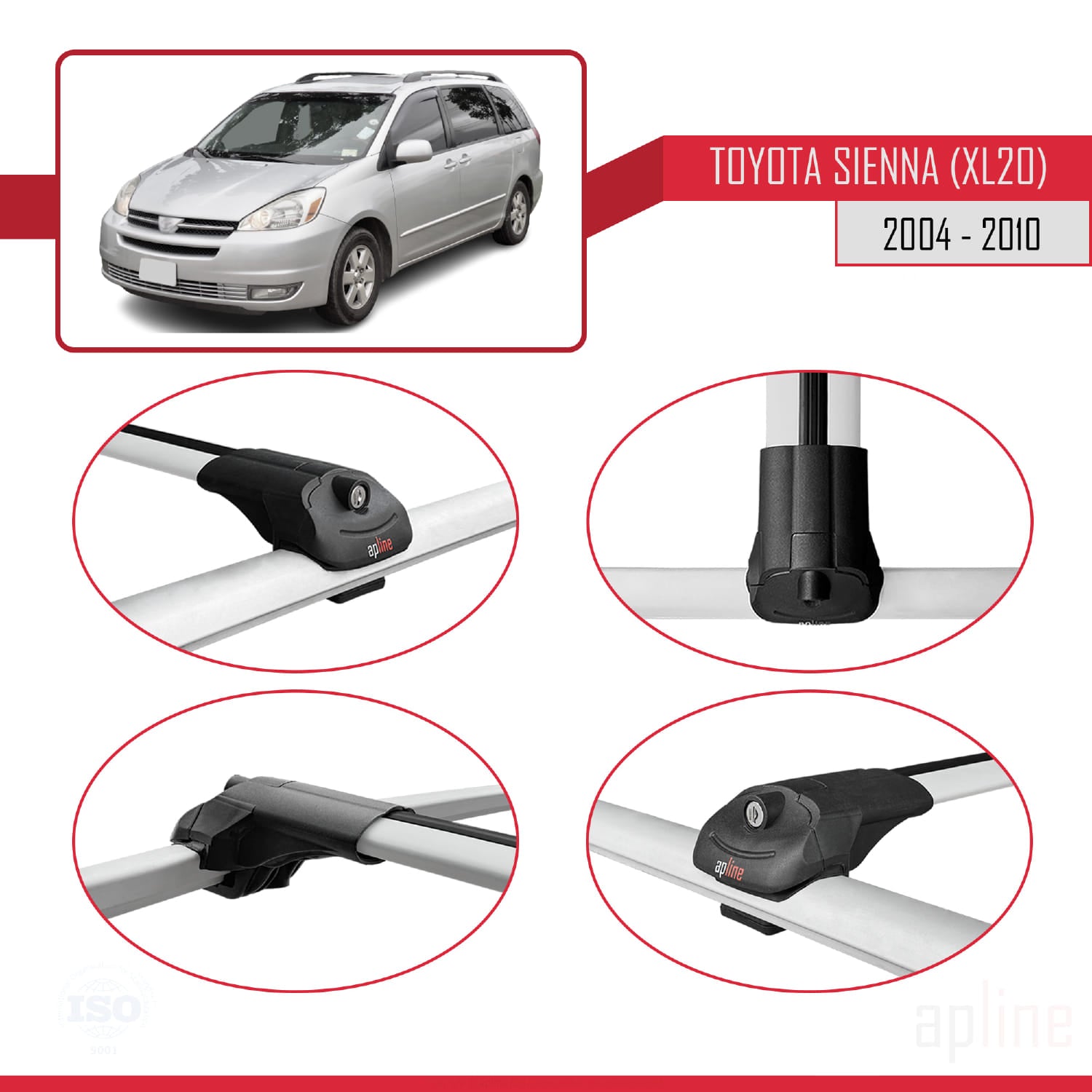 Compatible avec Toyota Sienna 2 (XL20) 2004-2010 ACE-1 Barres de Toit Railing Porte-Bagages de Voiture Gris Aluminium 3 Barres