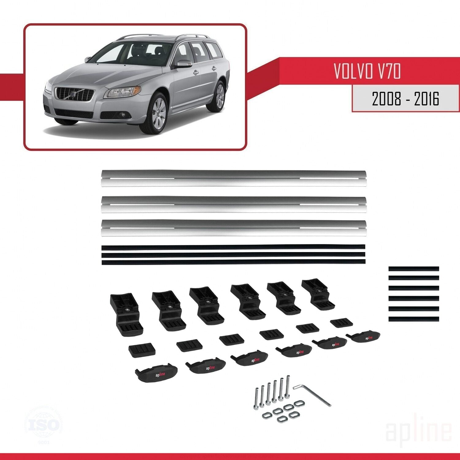 Compatible avec Volvo V70 III 2008-2016 BASIC Model Barres de Toit Railing Porte-Bagages de Voiture Gris Aluminium 3 Barres