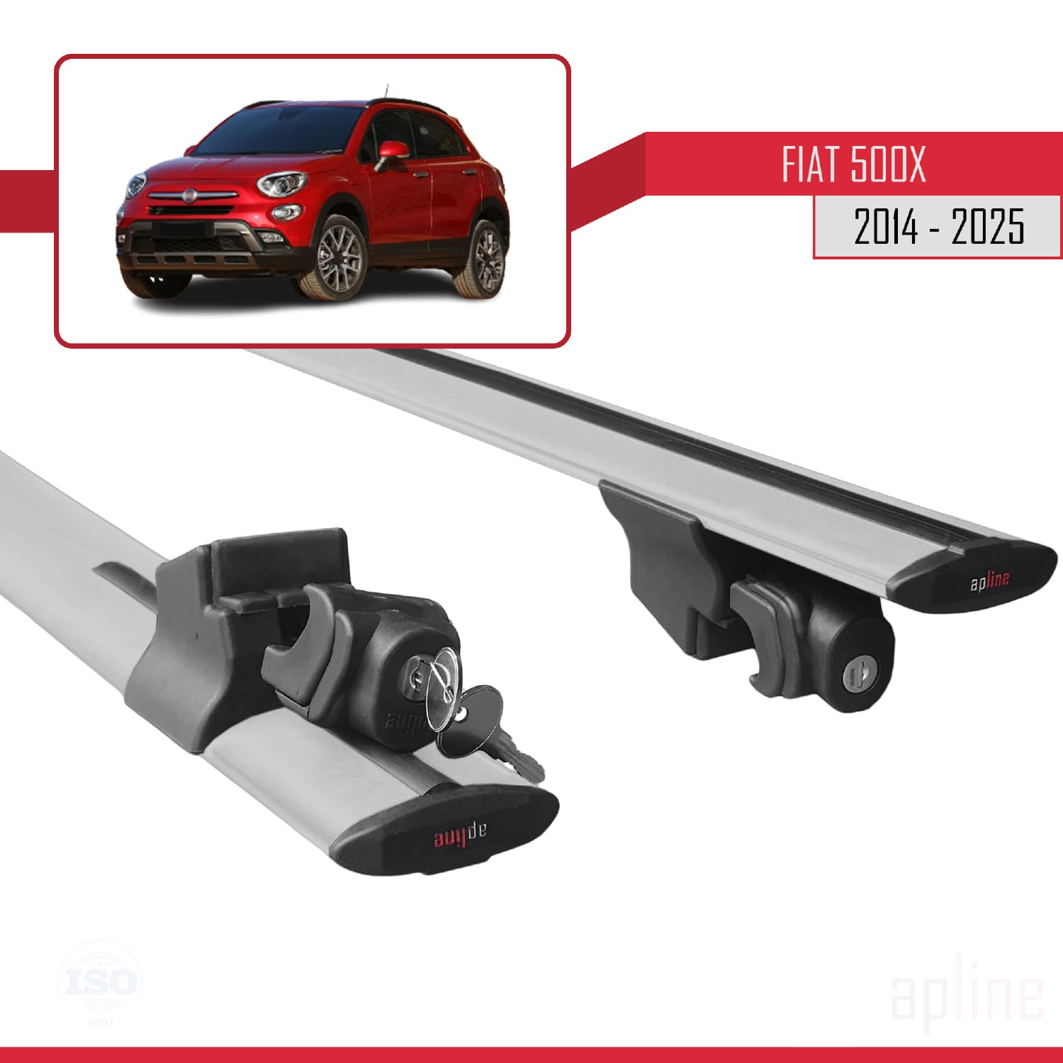 Kompatibel mit Fiat 500X 2014-2025 HOOK Modell Dachgepäckträger, graues Aluminium, 2 Stangen