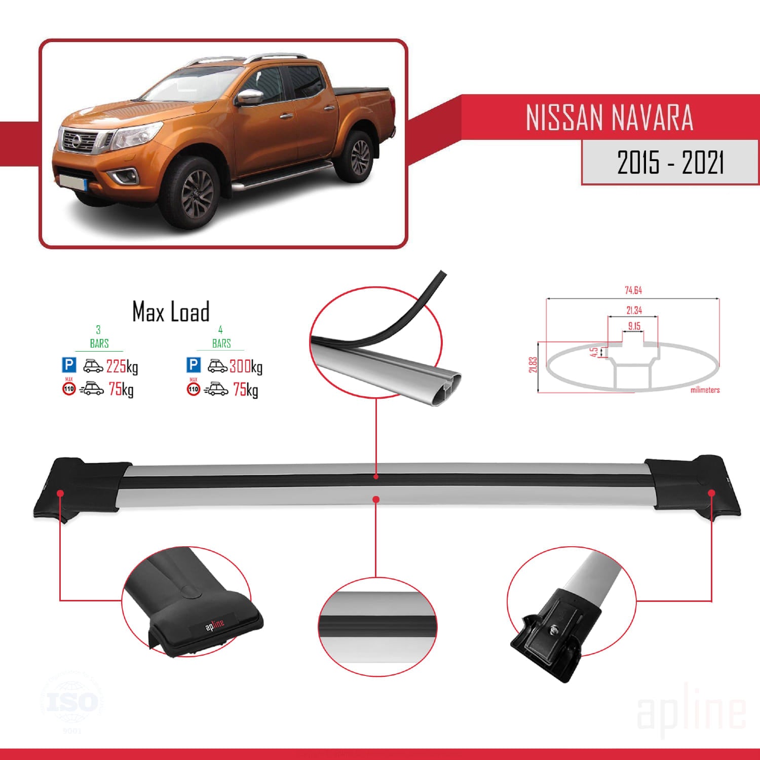 Compatible avec Nissan Navara 4 (D23) 2015-2021 FLY Model Barres de Toit Railing Porte-Bagages de Voiture Gris Aluminium 3 Barres