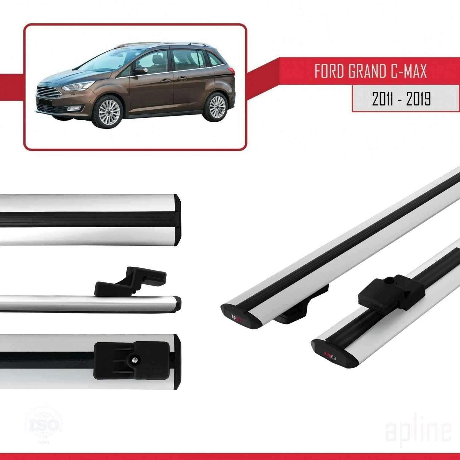Compatible avec Ford Grand C-Max (C344) 2011-2019 BASIC Model Barres de Toit Railing Porte-Bagages de Voiture Gris Aluminium 2 Barres