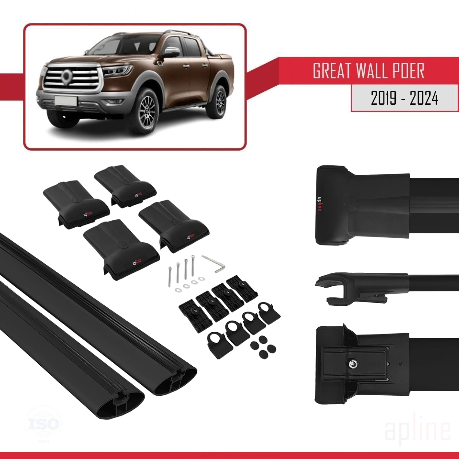 Compatible with Great Wall Poer 2019-2025 FLY Model Car Roof Rack Cross Bar Black Aluminium 2 Bars