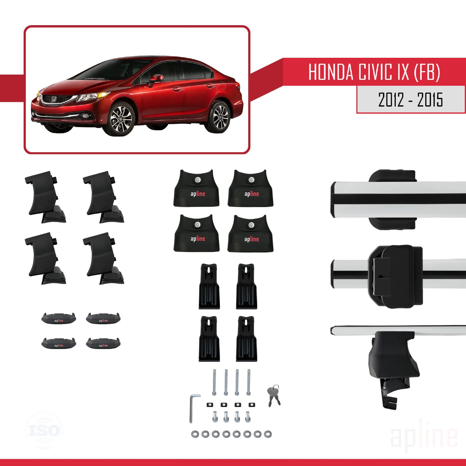 Compatible avec Honda Civic 9 (FB) Berline 2012-2015 ACE-4 Barres de Toit Railing Porte-Bagages de Voiture Gris Aluminium 2 Barres
