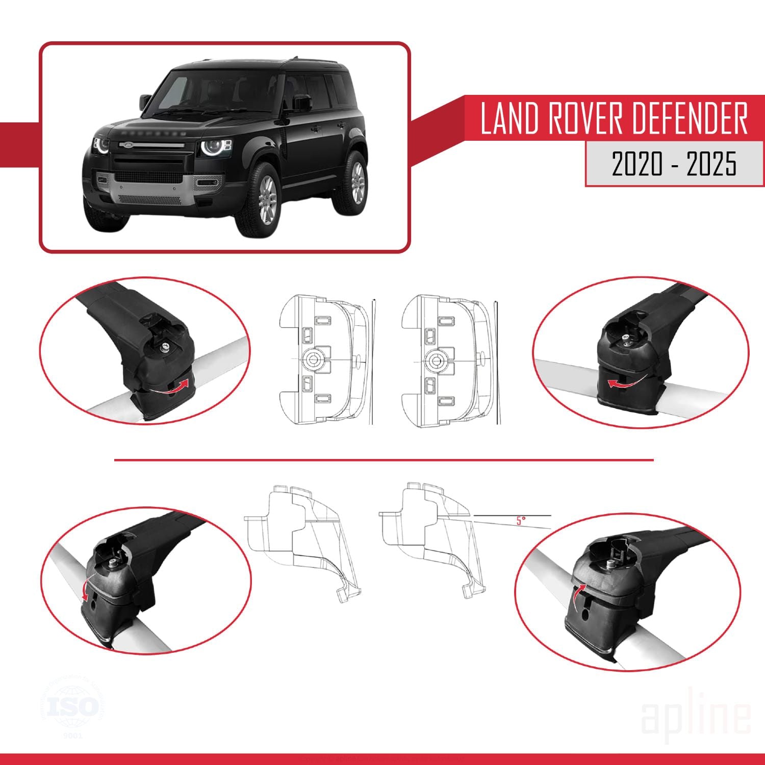 Compatible avec Land Rover Defender 2020-2025 ACE-2 Barres de Toit Railing Porte-Bagages de Voiture Noir Aluminium 2 Barres