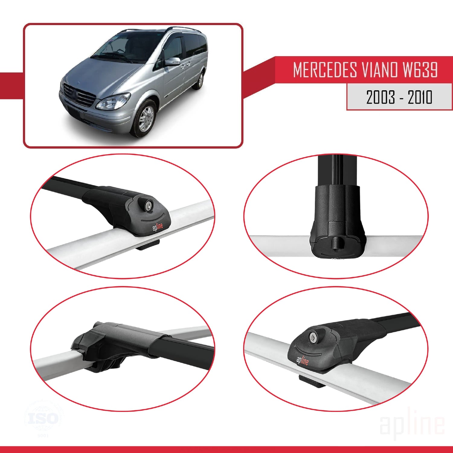 Compatible with Mercedes Viano 2 (W639) Pre-Facelift 2003-2010 ACE-1 Car Roof Rack Cross Bar Black Aluminium 3 Bars