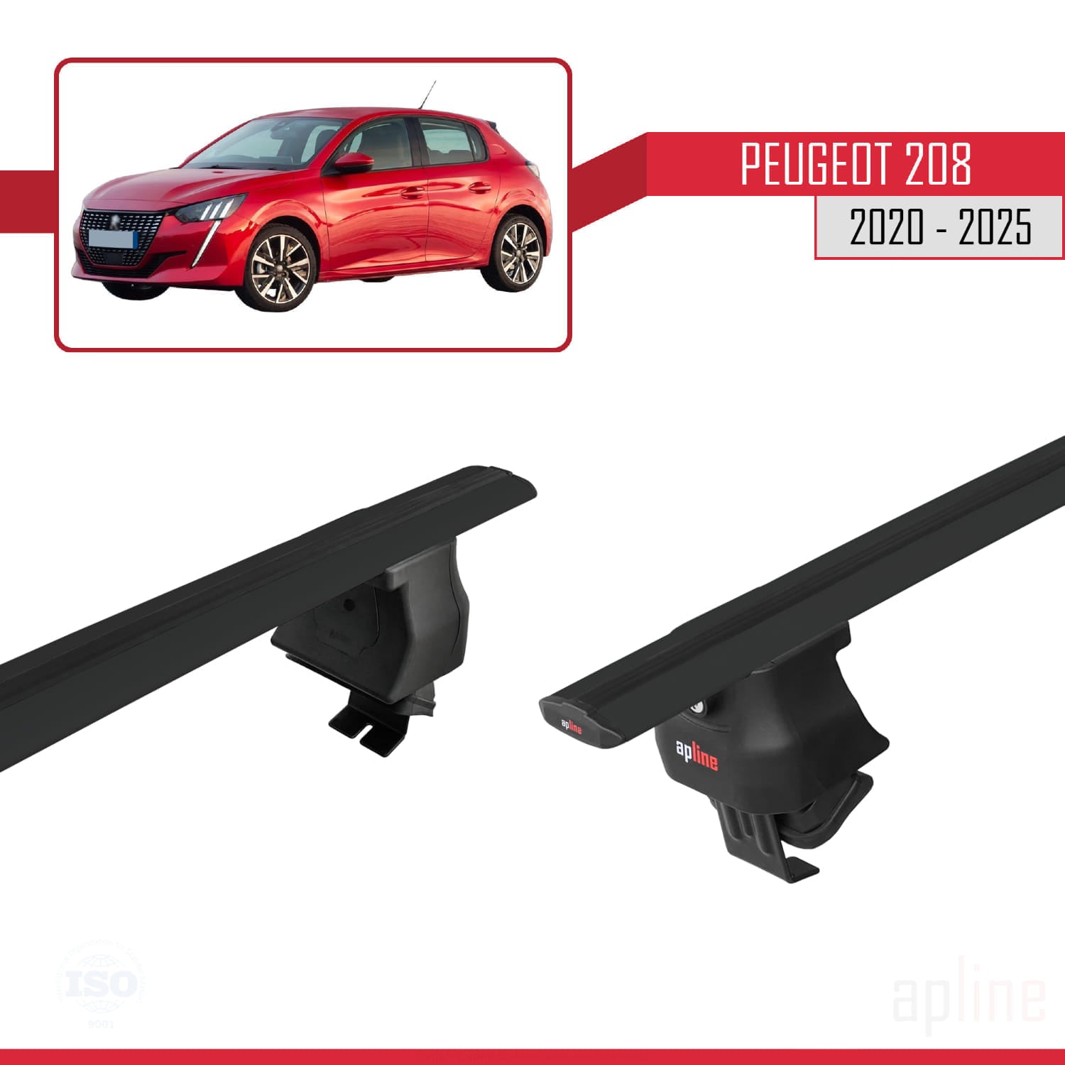 Compatible with Peugeot 208 II (P21) 2020-2025 ACE-4 Car Roof Rack Cross Bar Black Aluminium 2 Bars