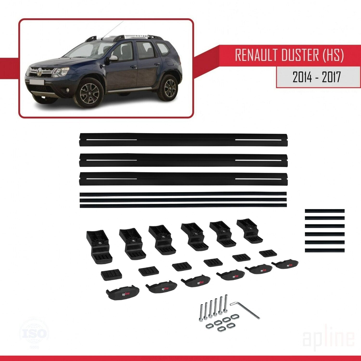 Compatible with Renault Duster (HS) Post-Facelift 2014-2017 BASIC Model Car Roof Rack Cross Bar Black Aluminium 3 Bars