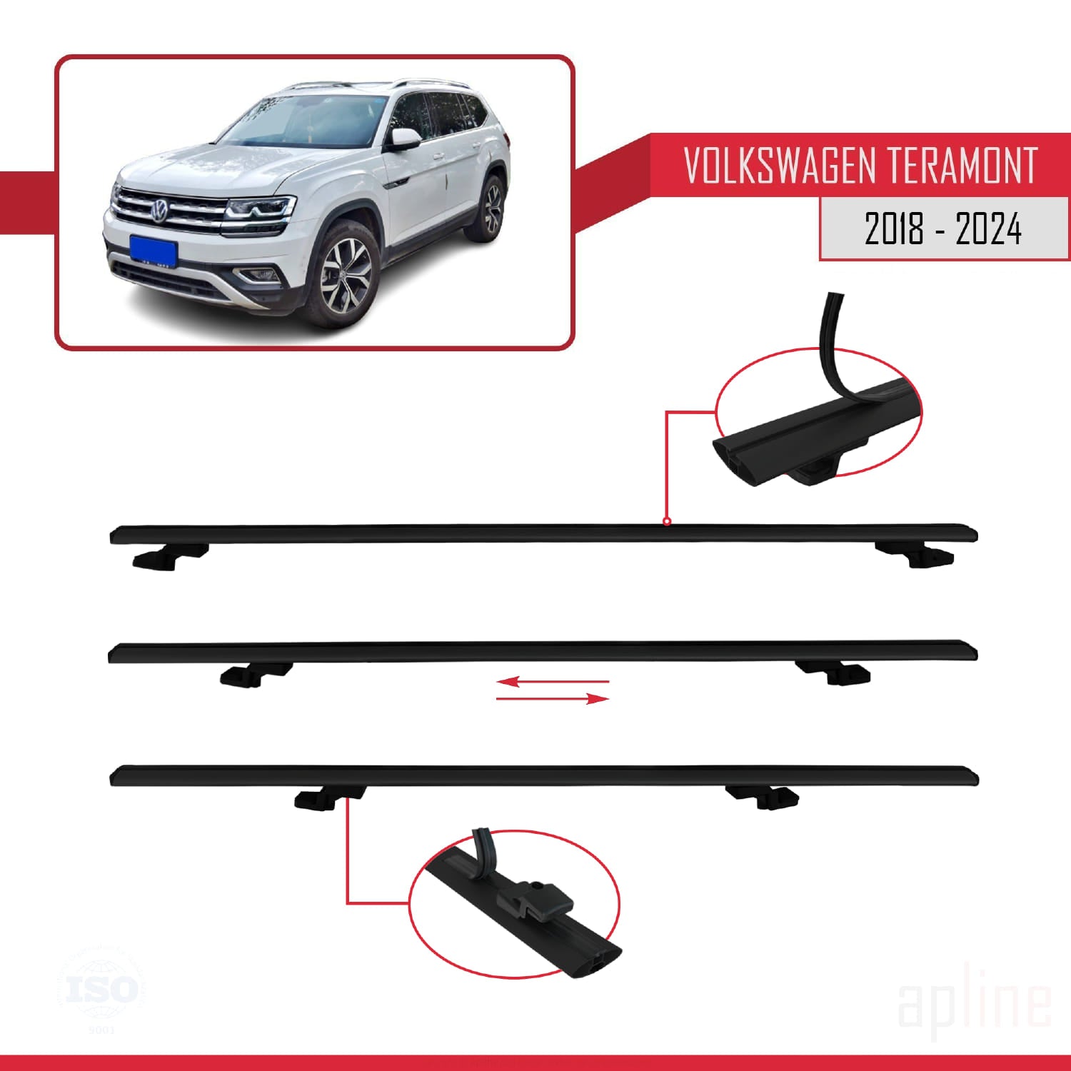 Compatible avec Volkswagen Teramont (CA1) 2018-2024 BASIC Model Barres de Toit Railing Porte-Bagages de Voiture Noir Aluminium 2 Barres