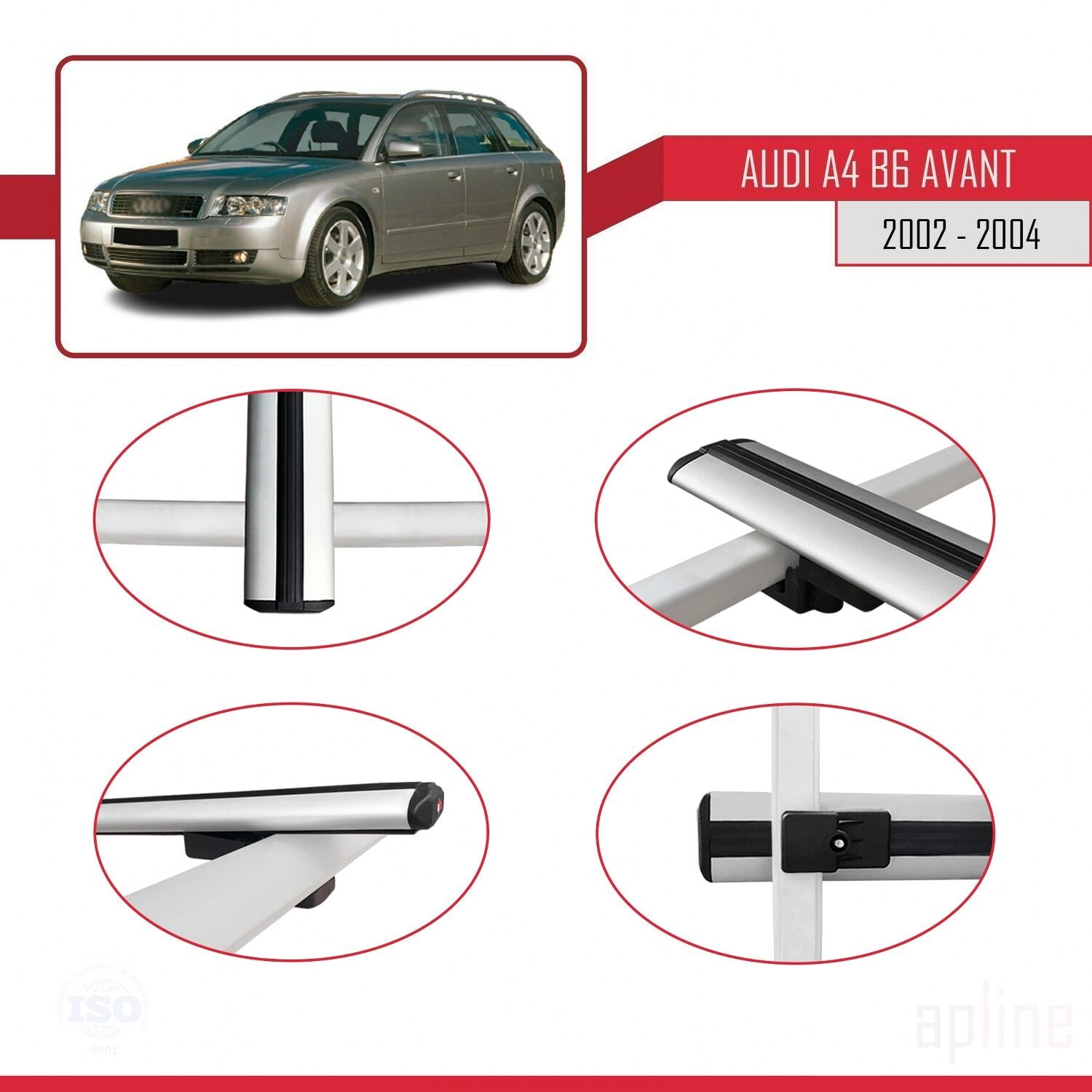 Compatible avec A4 (B6) Avant 2002-2004 BASIC Model Barres de Toit Railing Porte-Bagages de Voiture Gris Aluminium 2 Barres