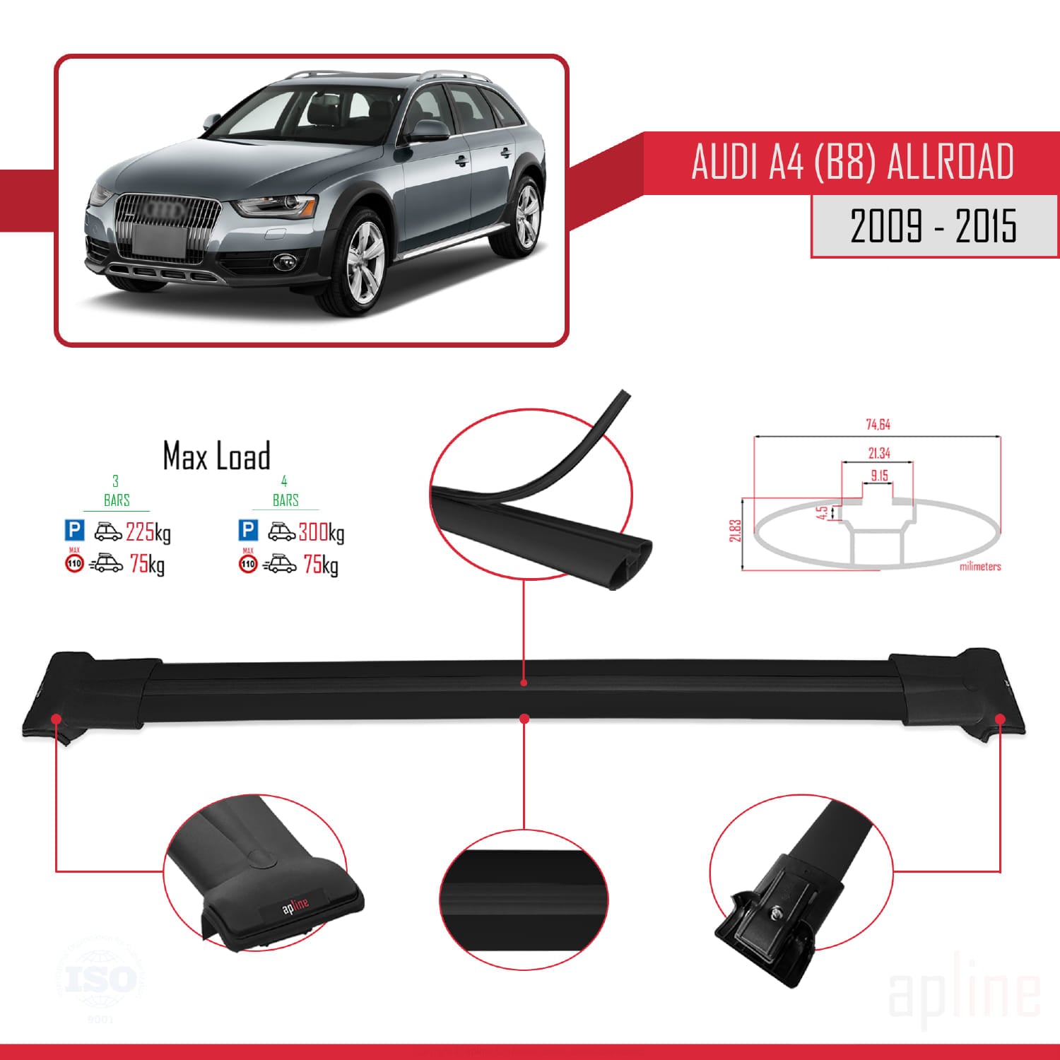 Compatible avec A4 (B8) Allroad 2009-2015 FLY Model Barres de Toit Railing Porte-Bagages de Voiture Noir Aluminium 3 Barres
