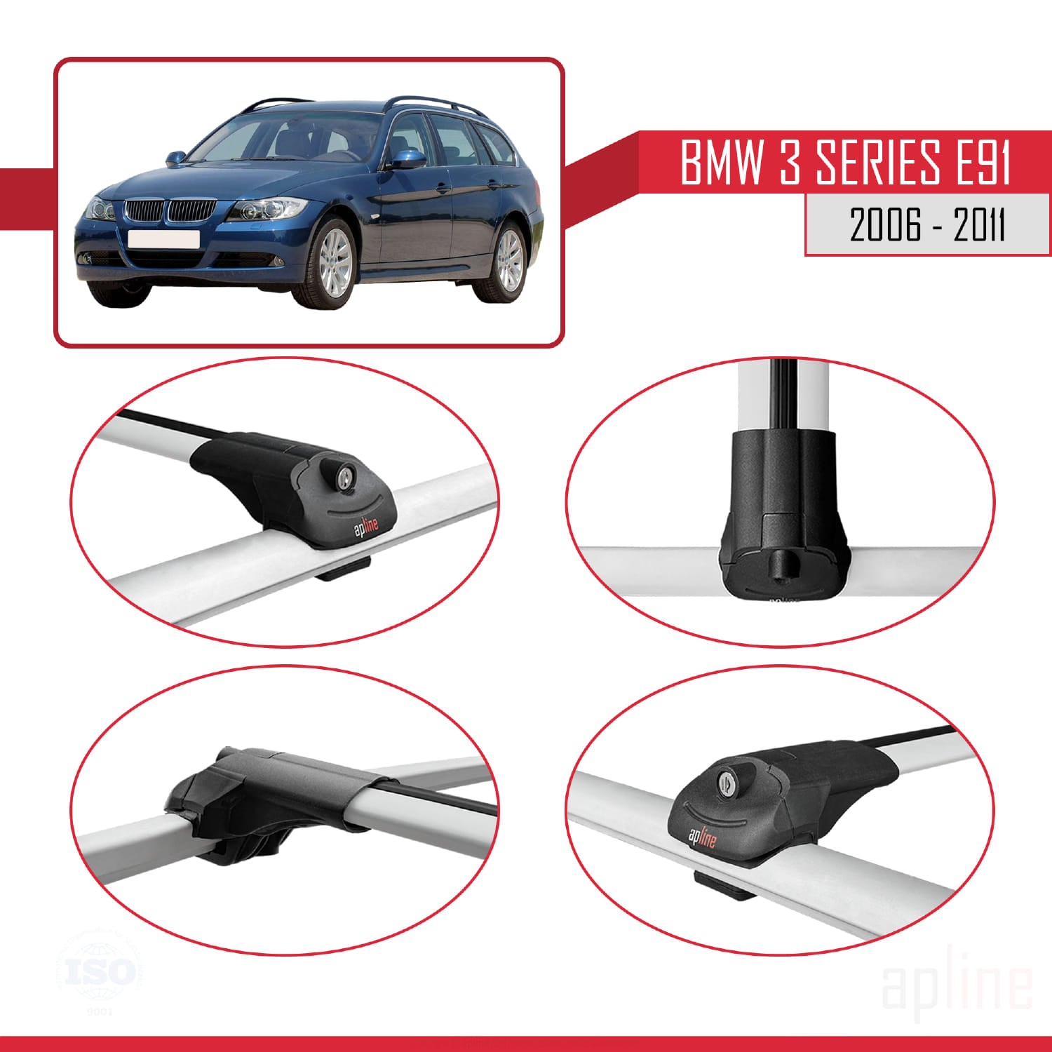 Compatible avec BMW 3 Series E91 Touring 2006-2011 ACE-1 Barres de Toit Railing Porte-Bagages de Voiture Gris Aluminium 2 Barres