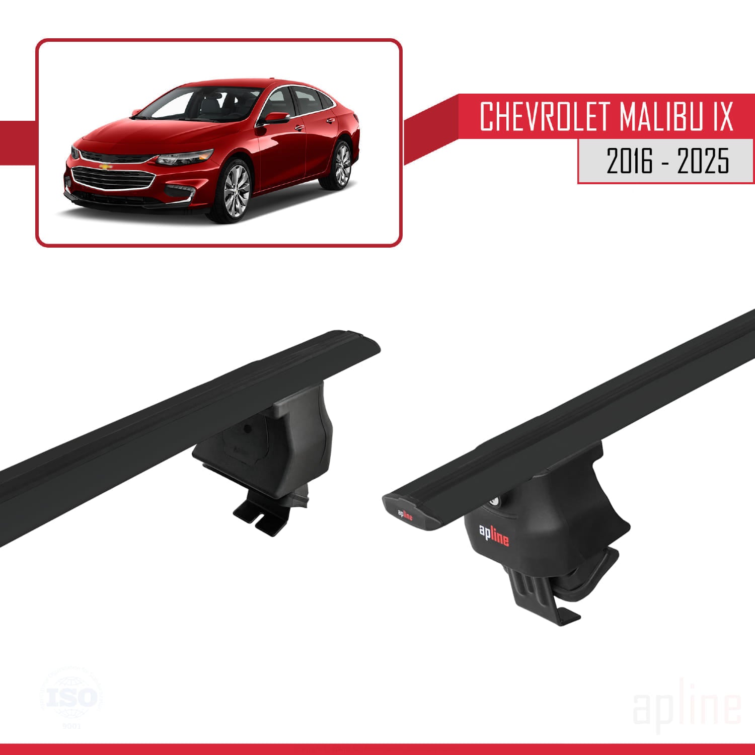 Compatible avec Chevrolet Malibu IX 2016-2025 ACE-4 Barres de Toit Railing Porte-Bagages de Voiture Noir Aluminium 2 Barres