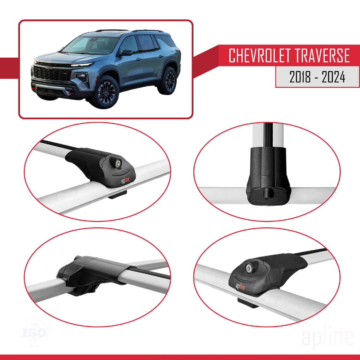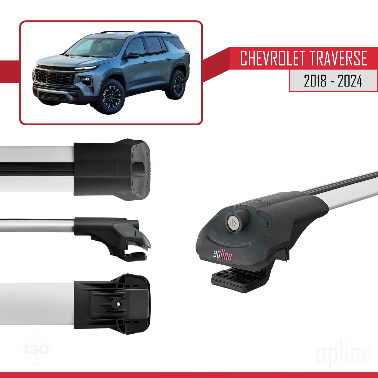 Compatible avec Chevrolet Traverse 2018-2024 ACE-1 Barres de Toit Railing Porte-Bagages de Voiture Gris Aluminium 2 Barres