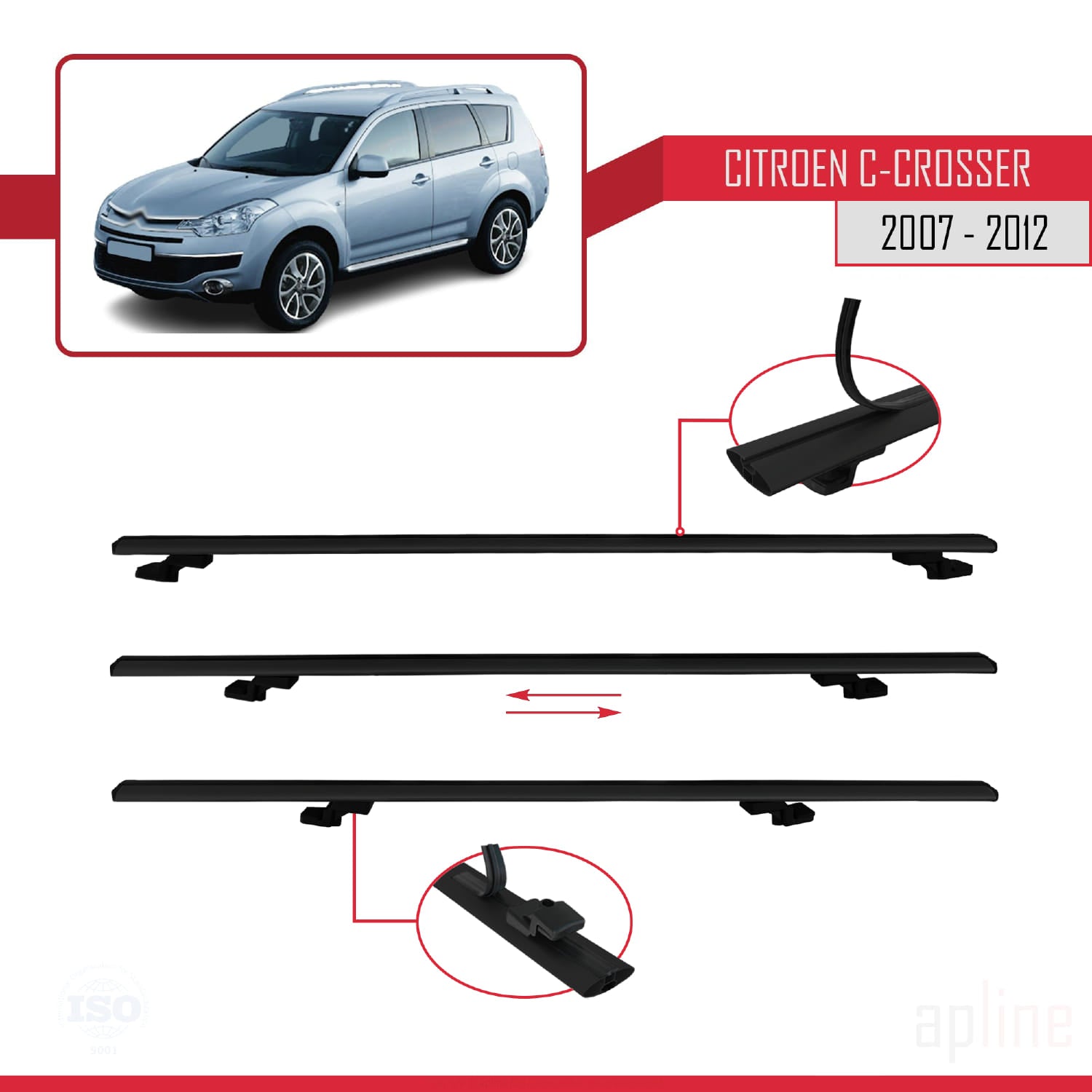 Compatible avec Citroen C-Crosser 2007-2012 BASIC Model Barres de Toit Railing Porte-Bagages de Voiture Noir Aluminium 2 Barres