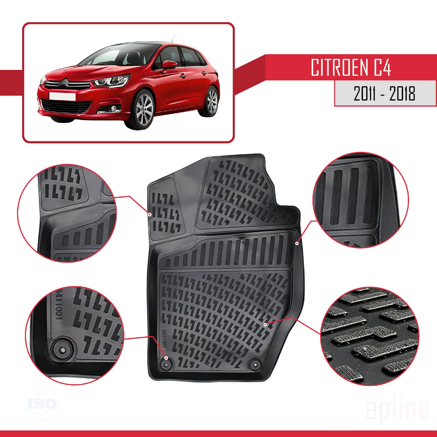 Compatible avec Citroen C4 II (B7) 2011-2018 4D Tapis de Voiture Noir