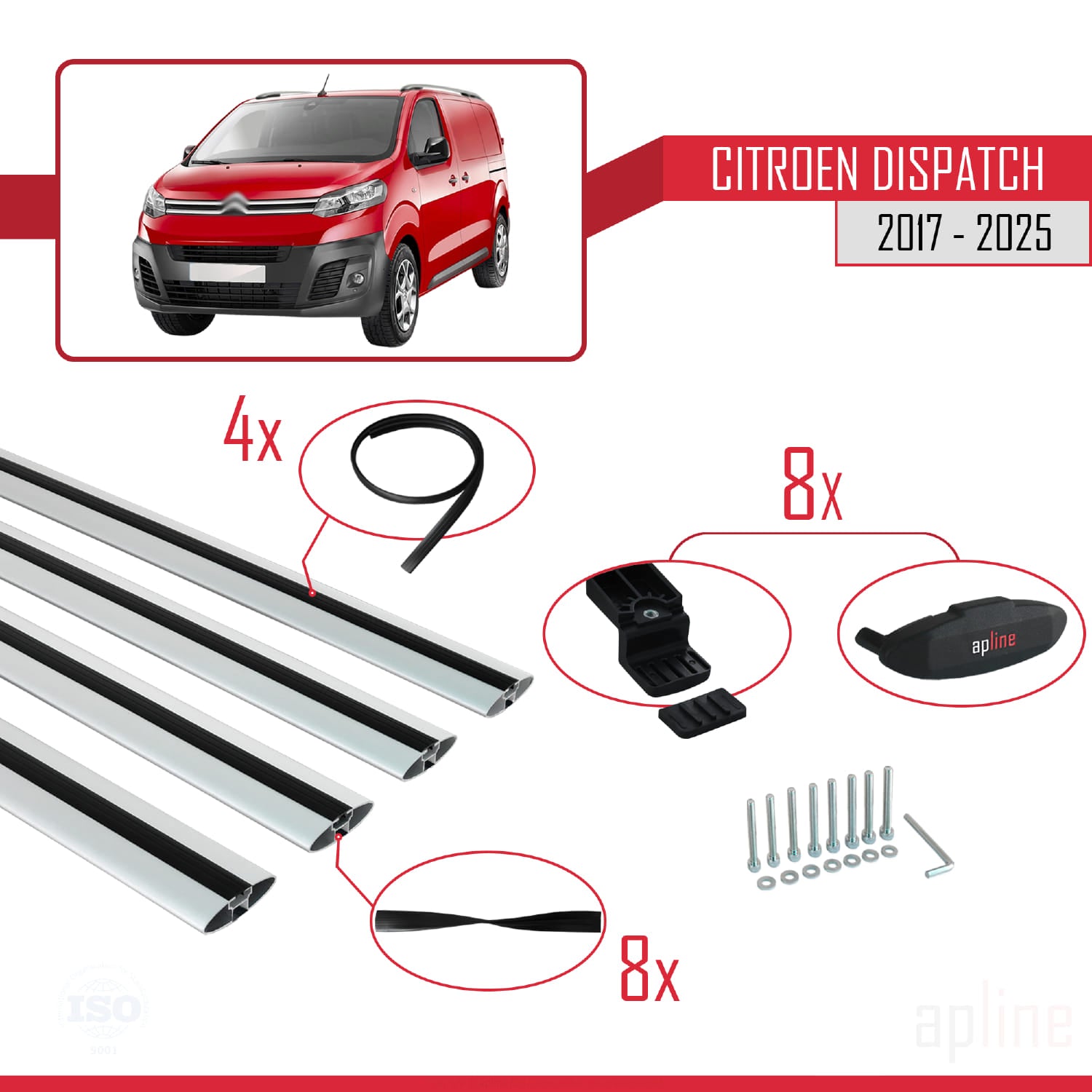 Compatible avec Citroen Dispatch (K0) 2017-2025 BASIC Model Barres de Toit Railing Porte-Bagages de Voiture Gris Aluminium 4 Barres