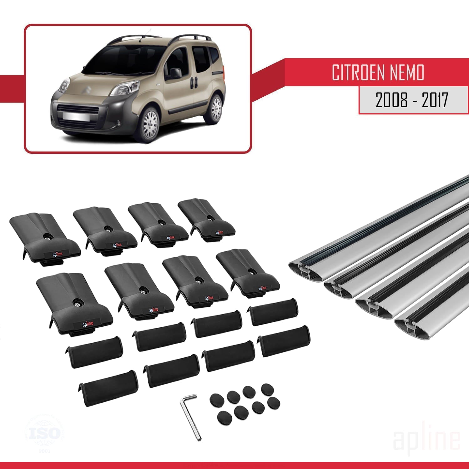 Compatible avec Citroen Nemo 3 (225) 2008-2017 FLY Model Barres de Toit Railing Porte-Bagages de Voiture Gris Aluminium 4 Barres