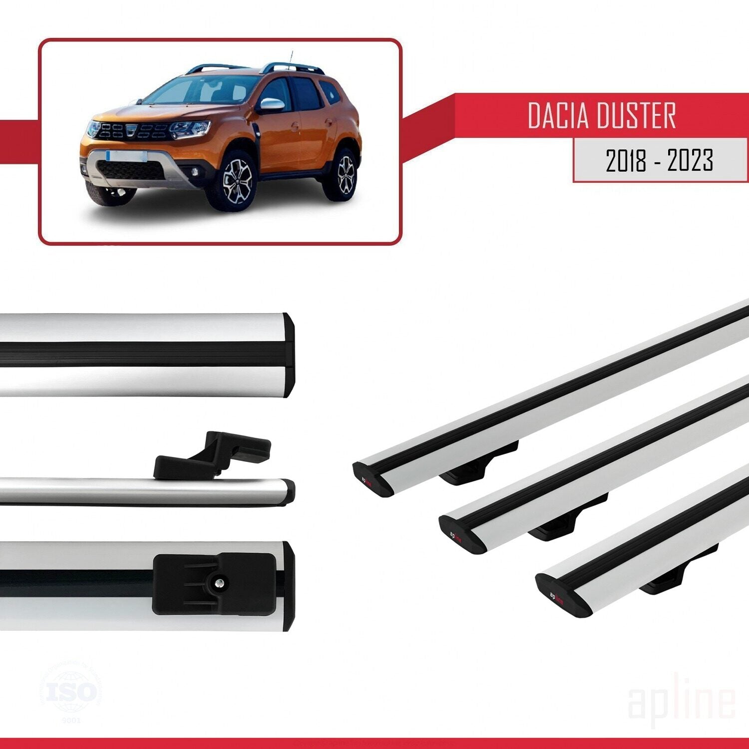 Compatible avec Dacia Duster 2 (HM) 2018-2024 BASIC Model Barres de Toit Railing Porte-Bagages de Voiture Gris Aluminium 3 Barres