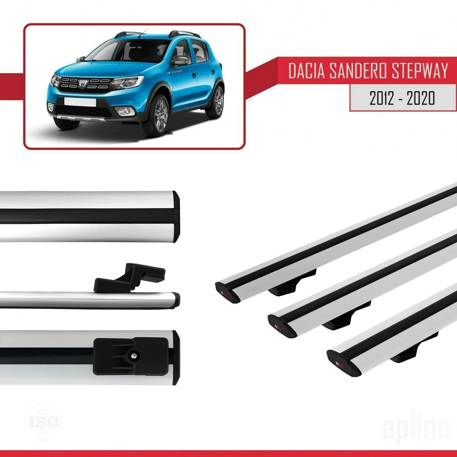 Compatible avec Dacia Sandero Stepway 2 2012-2020 BASIC Model Barres de Toit Railing Porte-Bagages de Voiture Gris Aluminium 3 Barres