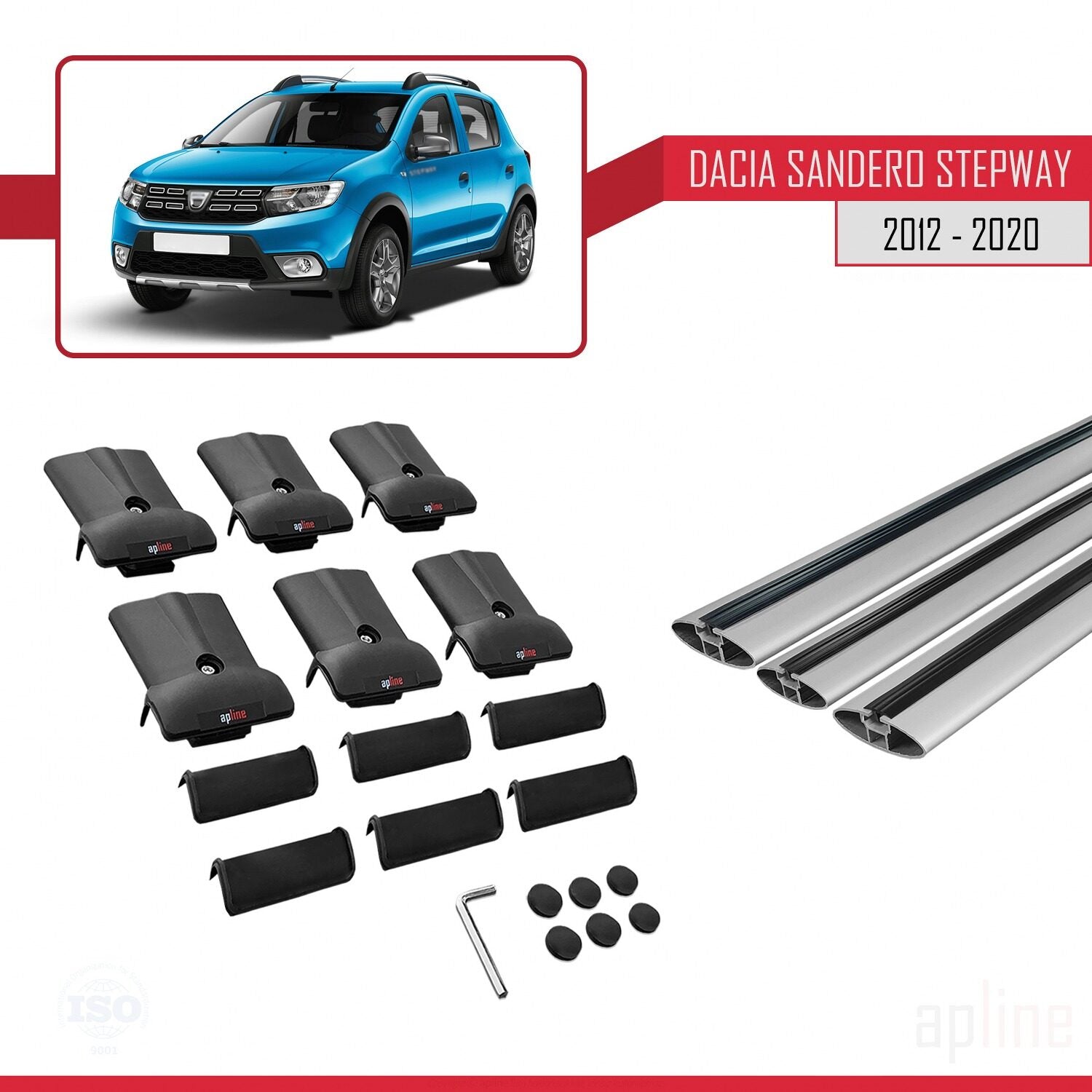 Compatible avec Dacia Sandero Stepway 2 2012-2020 FLY Model Barres de Toit Railing Porte-Bagages de Voiture Gris Aluminium 3 Barres