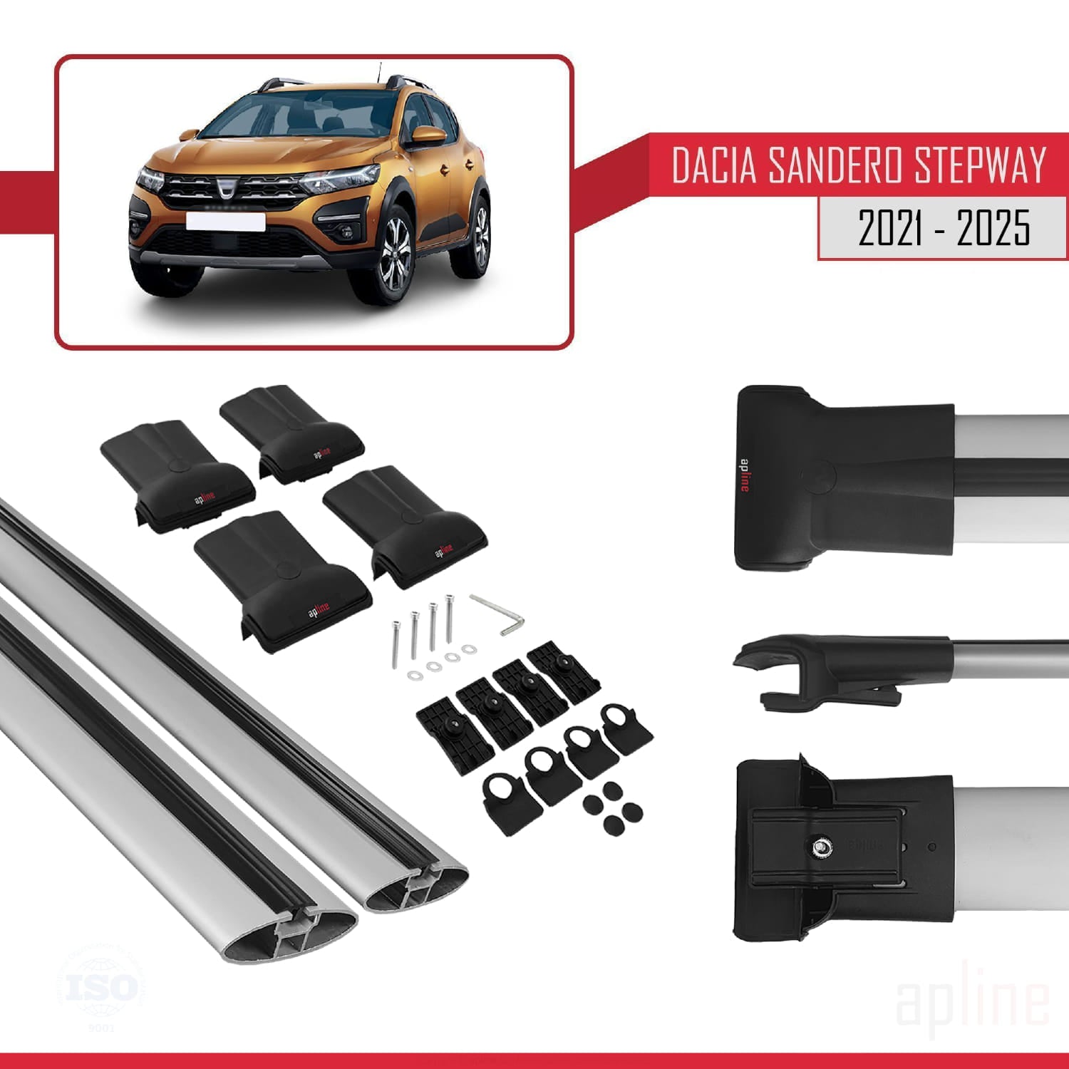Compatible avec Dacia Sandero Stepway 3 2021-2025 FLY Model Barres de Toit Railing Porte-Bagages de Voiture Gris Aluminium 2 Barres