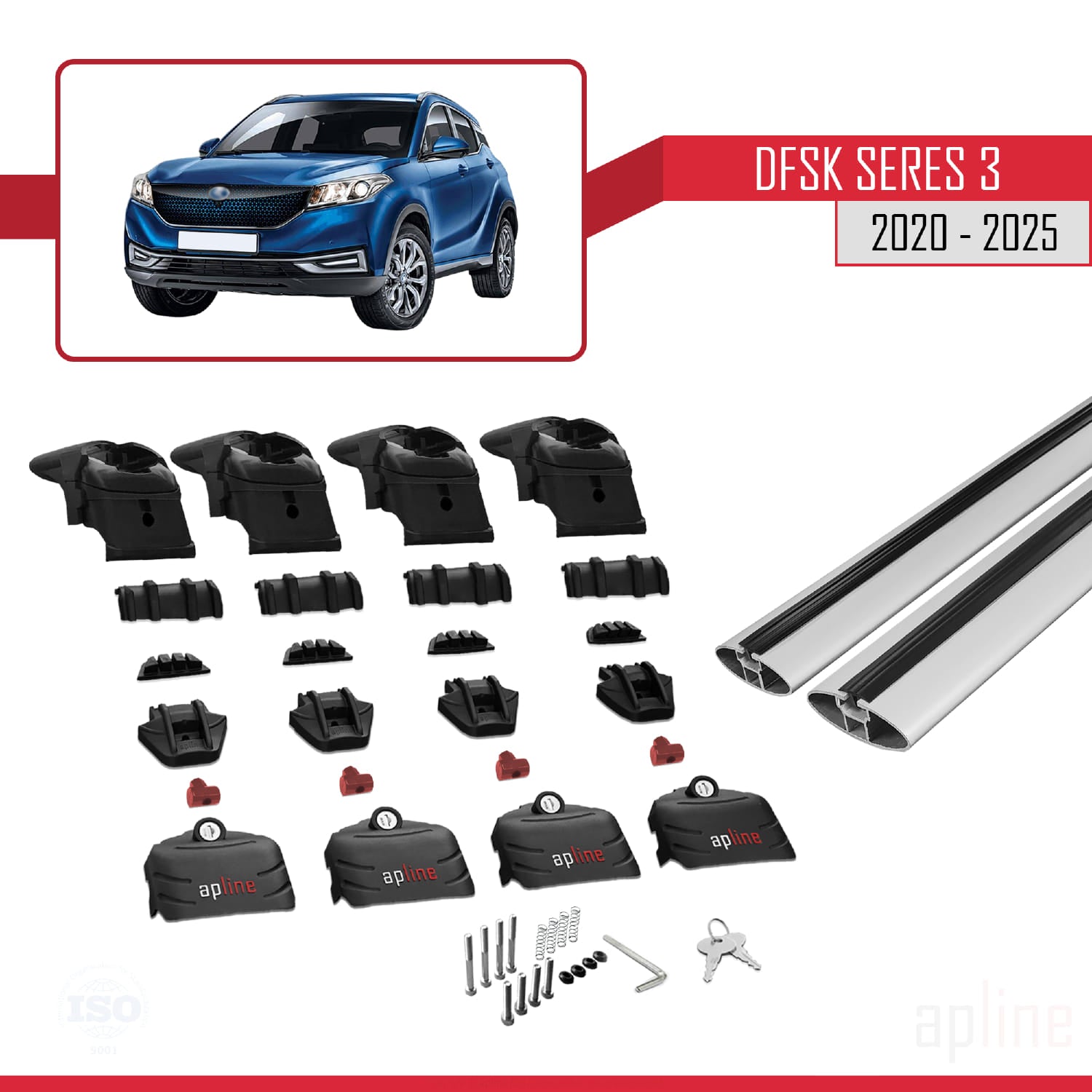 Compatible avec DFSK Glory/Seres 3 2020-2025 ACE-2 Barres de Toit Railing Porte-Bagages de Voiture Gris Aluminium 2 Barres
