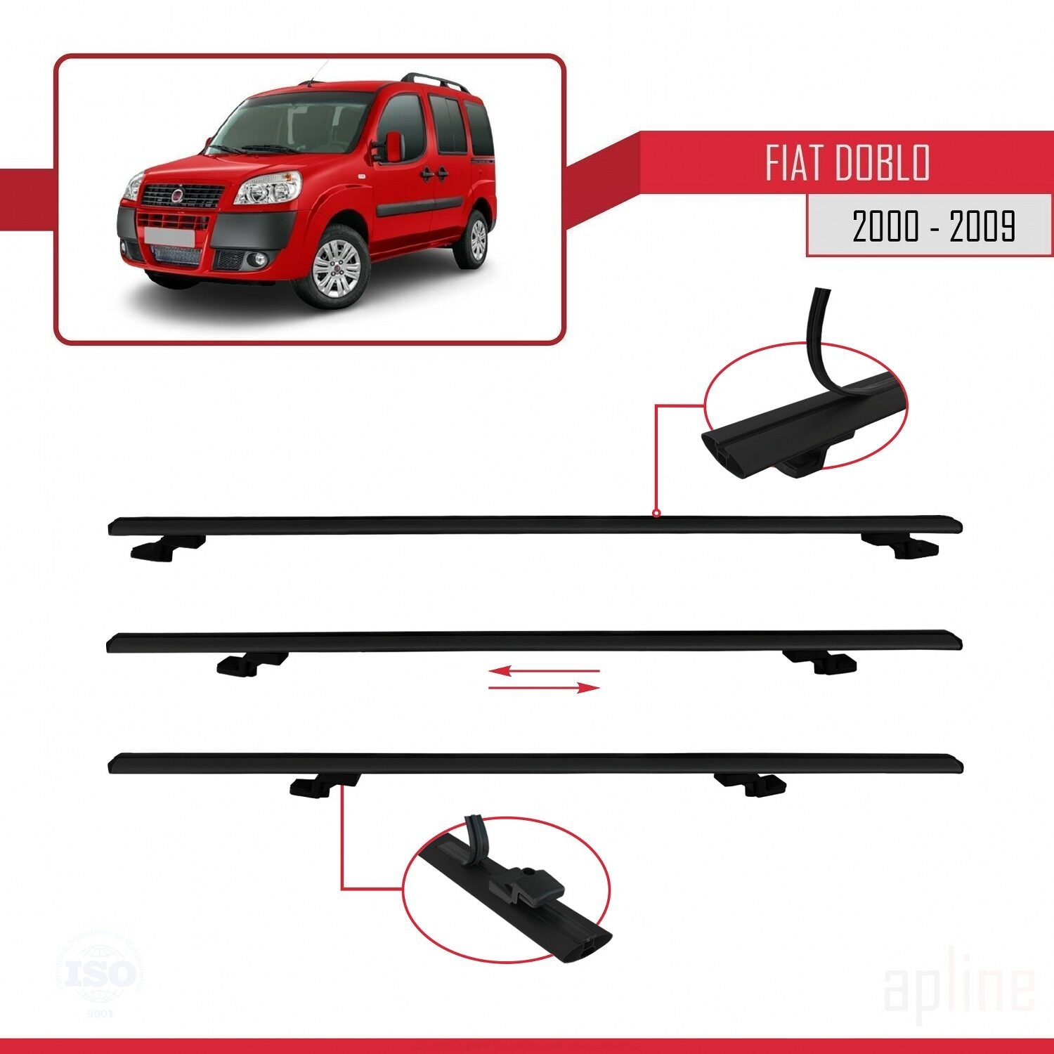 Compatible avec Fiat Doblo 2000-2009 BASIC Model Barres de Toit Railing Porte-Bagages de Voiture Noir Aluminium 3 Barres