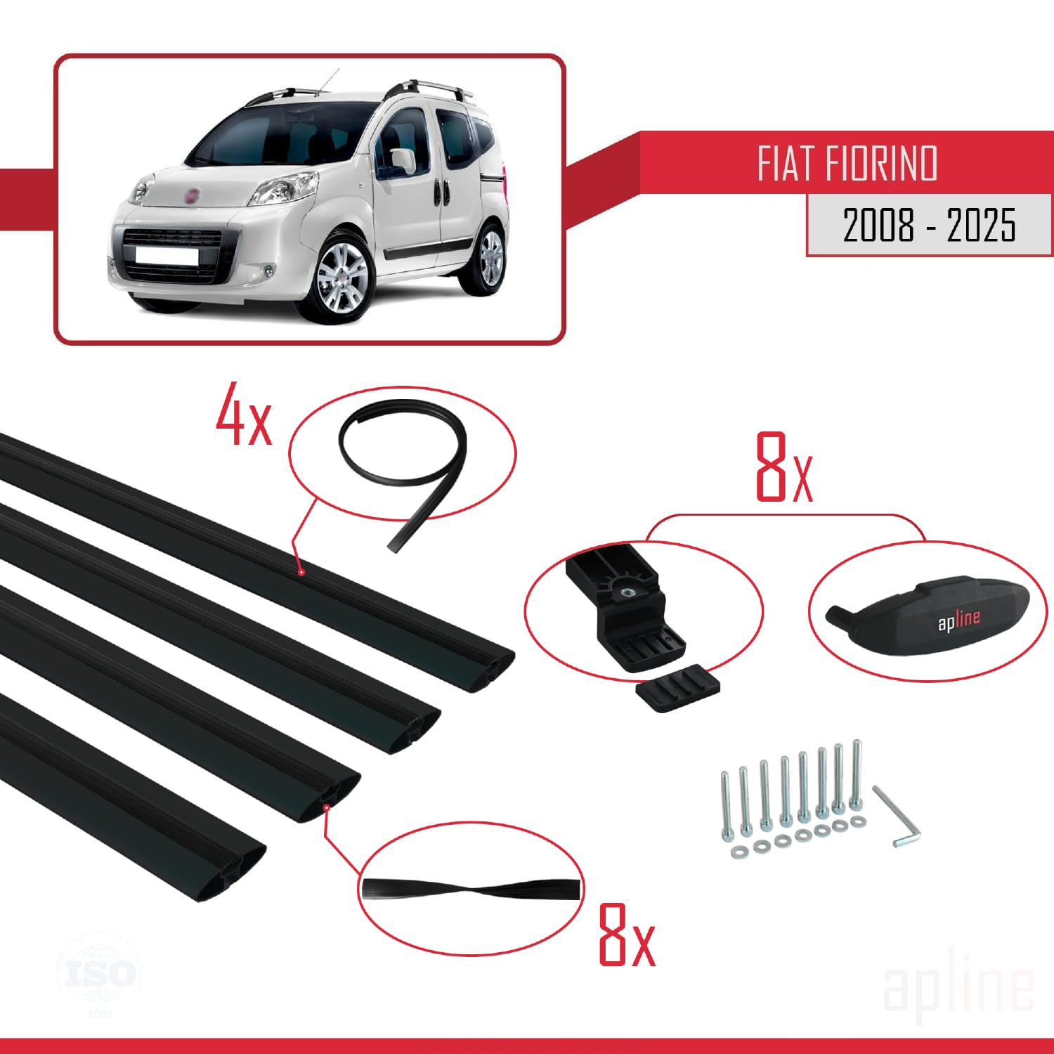 Compatible avec Fiat Fiorino 3 2008-2025 BASIC Model Barres de Toit Railing Porte-Bagages de Voiture Noir Aluminium 4 Barres