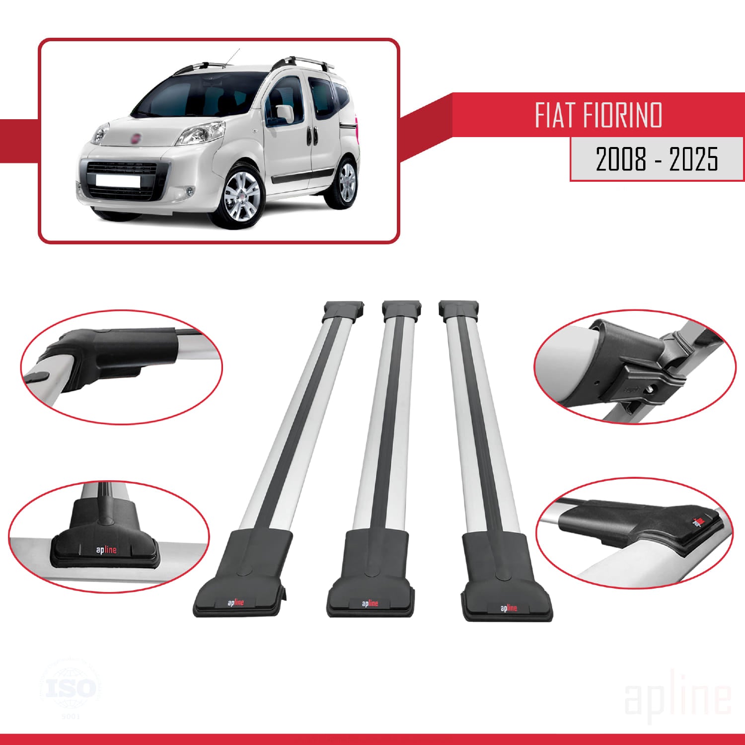 Compatible avec Fiat Fiorino 3 2008-2025 FLY Model Barres de Toit Railing Porte-Bagages de Voiture Gris Aluminium 3 Barres