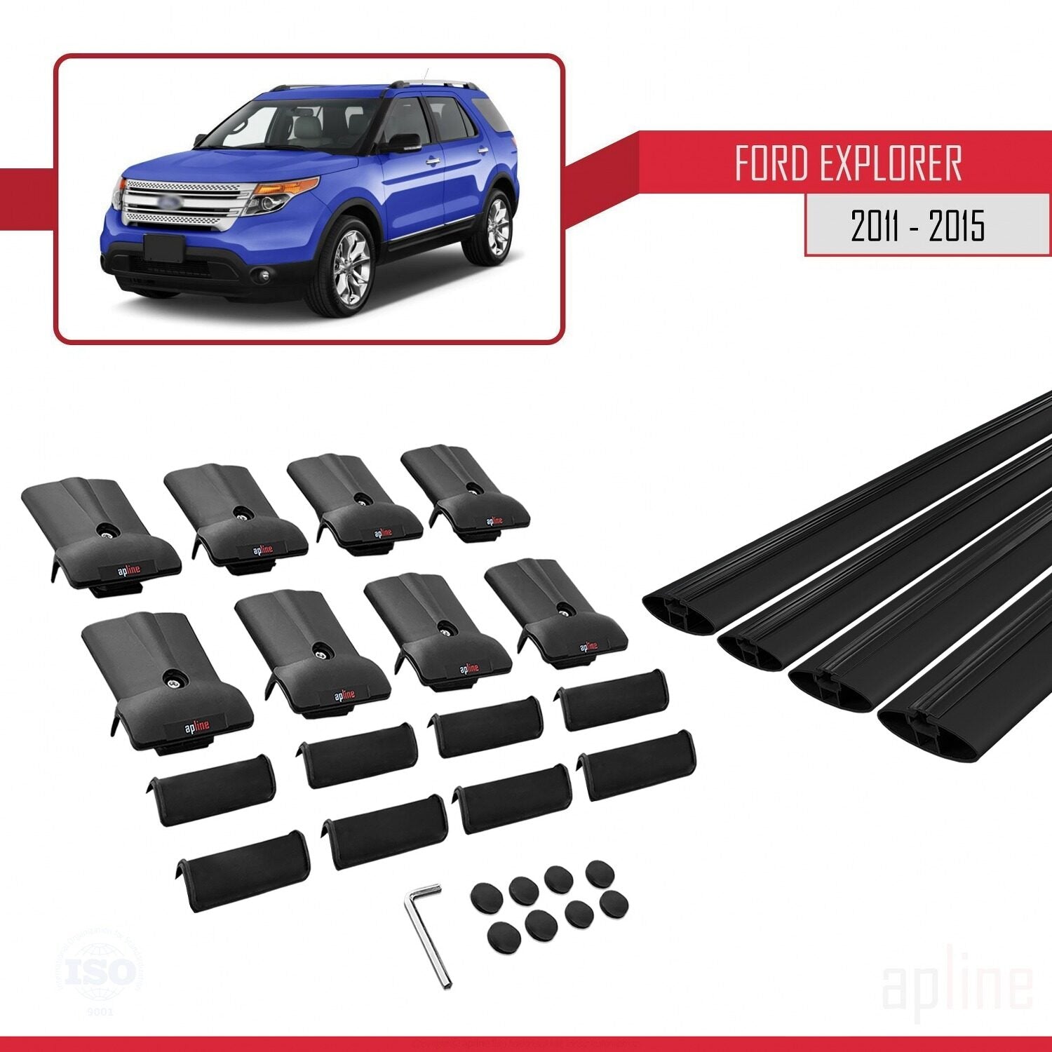 Compatible avec Ford Explorer 5 (U502) Pre-Facelift 2011-2015 FLY Model Barres de Toit Railing Porte-Bagages de Voiture Noir Aluminium 4 Barres