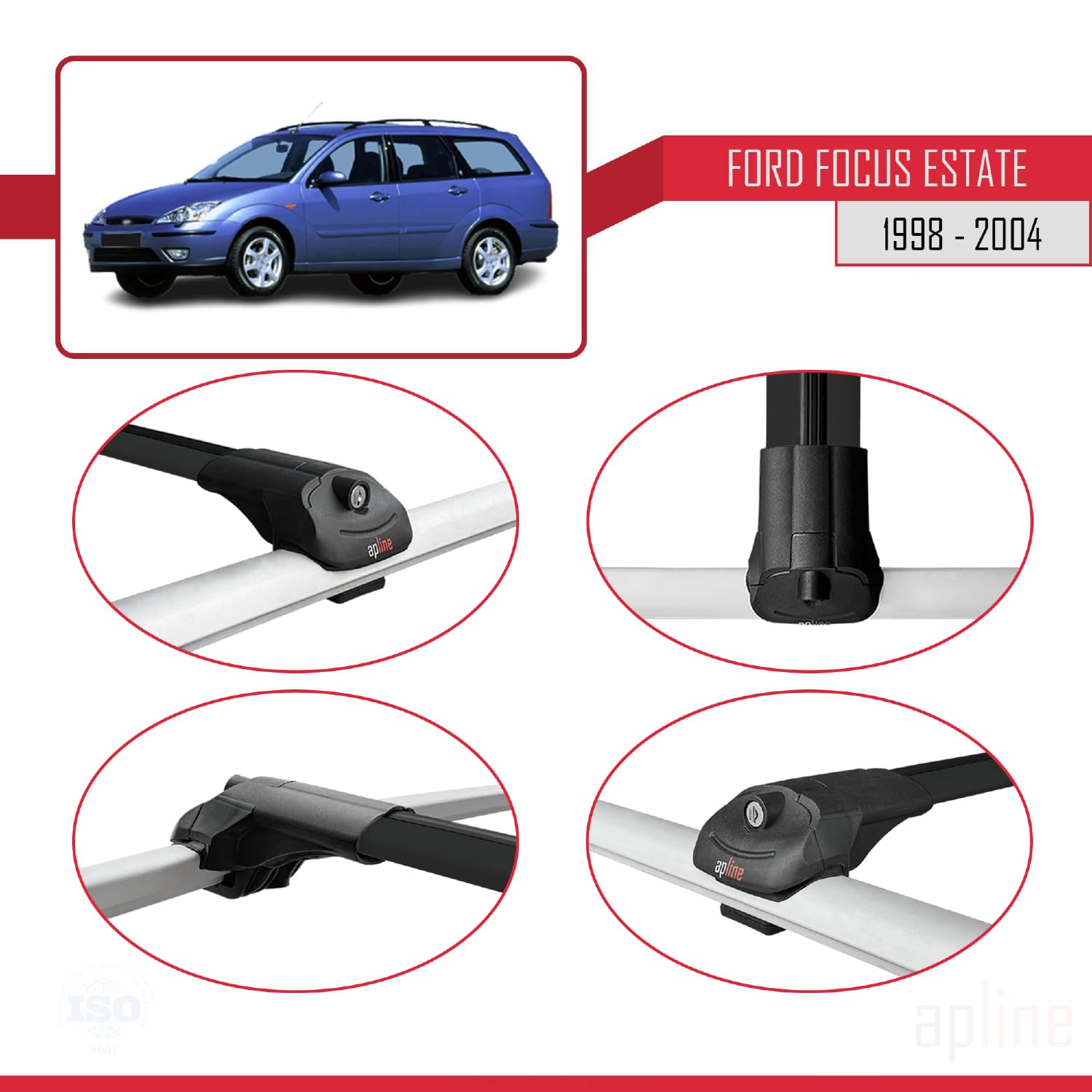 Compatible avec Ford Focus (C170) Break 1998-2004 ACE-1 Barres de Toit Railing Porte-Bagages de Voiture Noir Aluminium 3 Barres