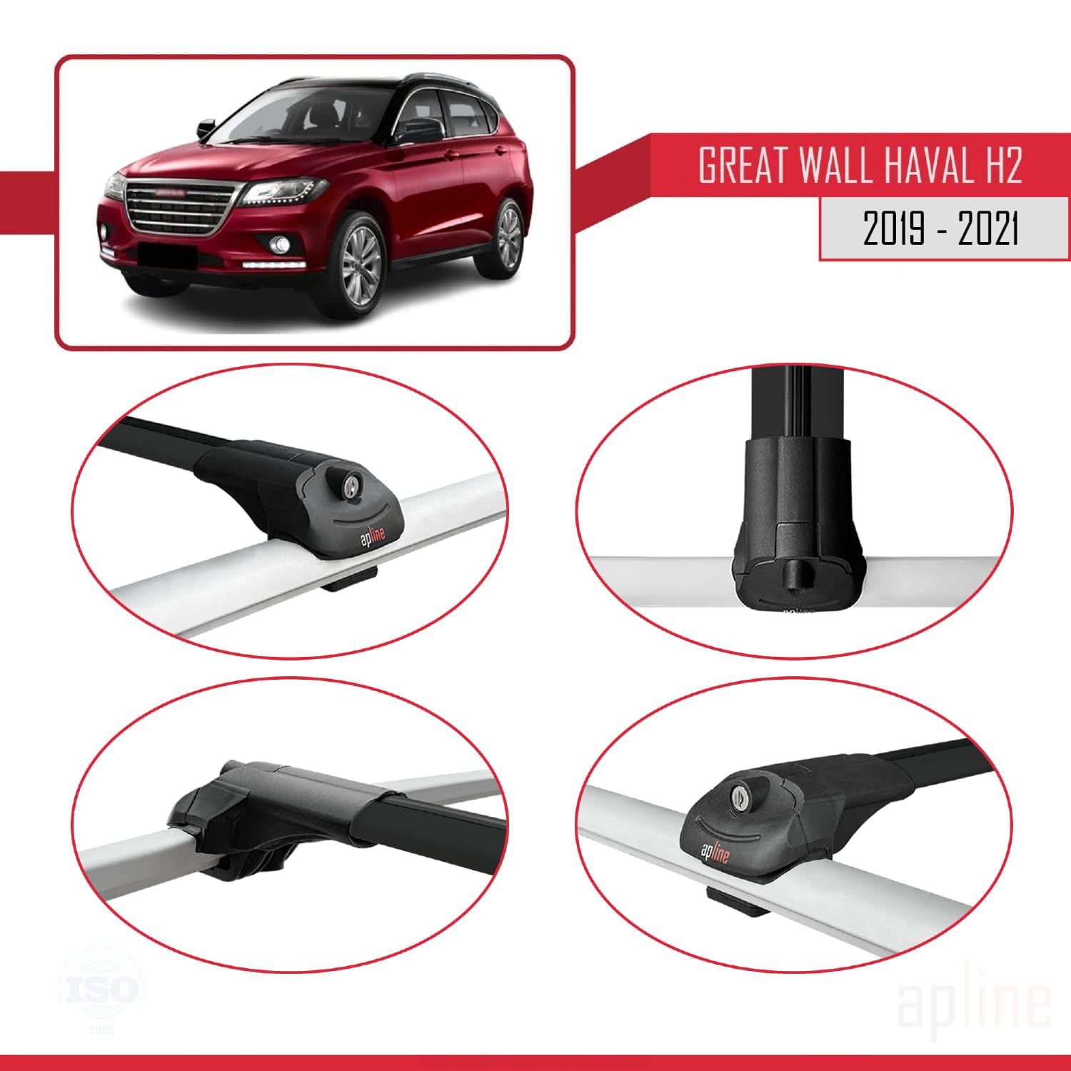 Compatible avec Great Wall Haval H2 2019-2021 ACE-1 Barres de Toit Railing Porte-Bagages de Voiture Noir Aluminium 3 Barres