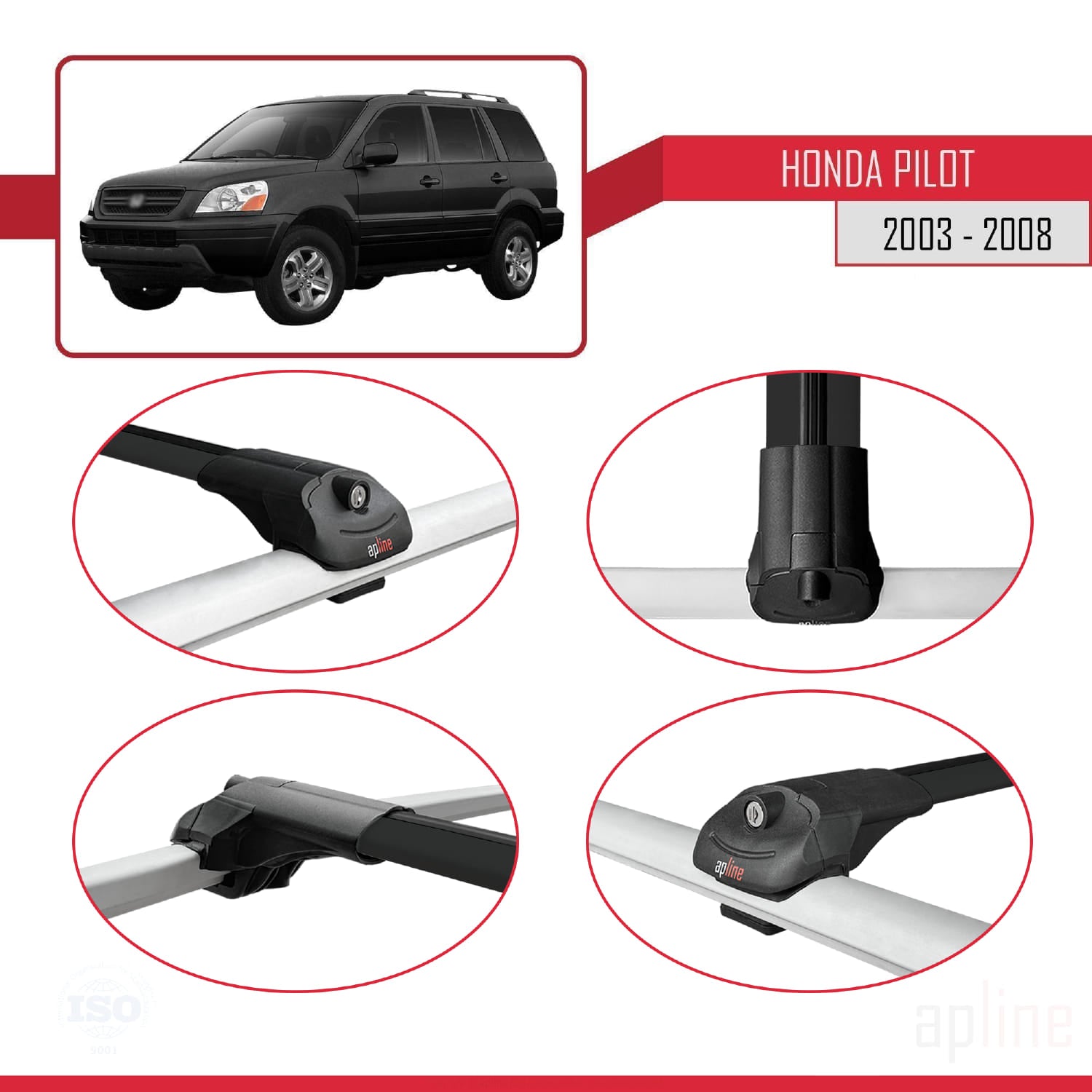 Compatible avec Honda Pilot 2003-2008 ACE-1 Barres de Toit Railing Porte-Bagages de Voiture Noir Aluminium 2 Barres