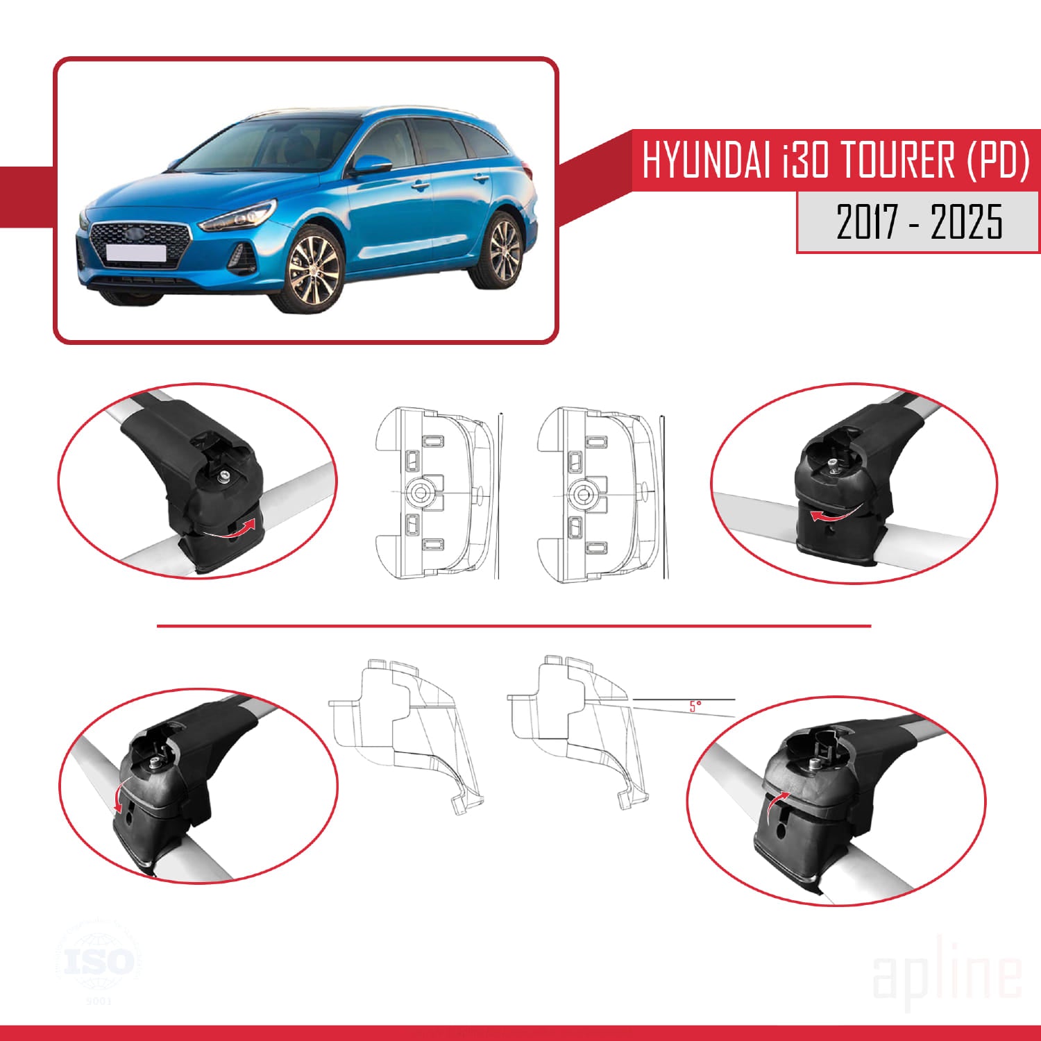 Compatible avec Hyundai i30 3 (PD) Tourer 2017-2025 ACE-2 Barres de Toit Railing Porte-Bagages de Voiture Gris Aluminium 2 Barres
