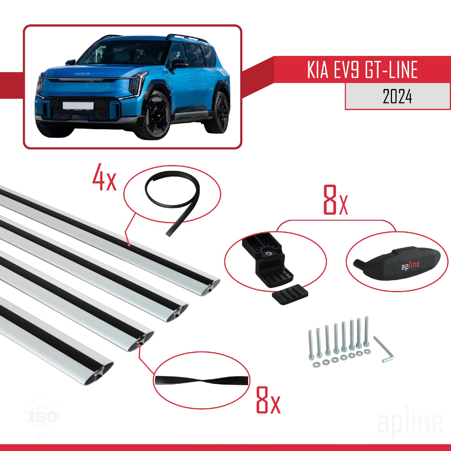 Compatible avec KIA EV9 GT-LINE 2024-2025 BASIC Model Barres de Toit Railing Porte-Bagages de Voiture Gris Aluminium 4 Barres
