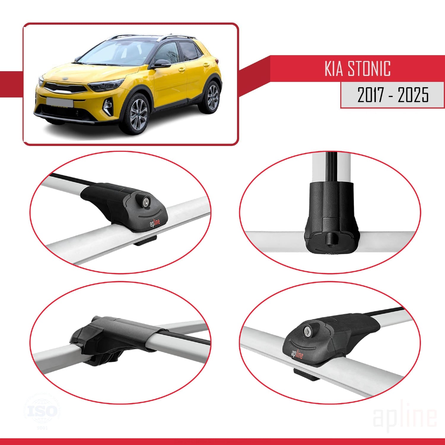 Compatible avec Kia Stonic 2017-2025 ACE-1 Barres de Toit Railing Porte-Bagages de Voiture Gris Aluminium 2 Barres