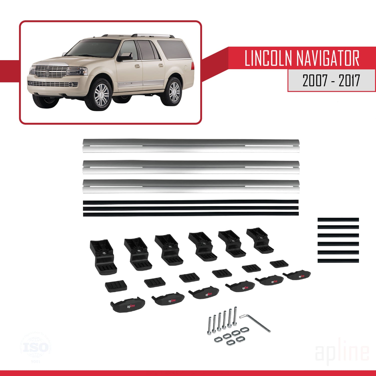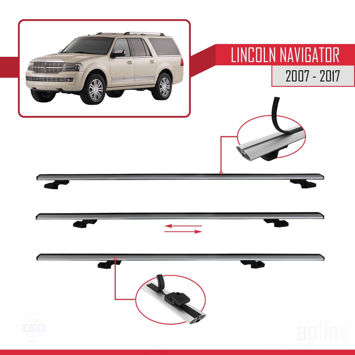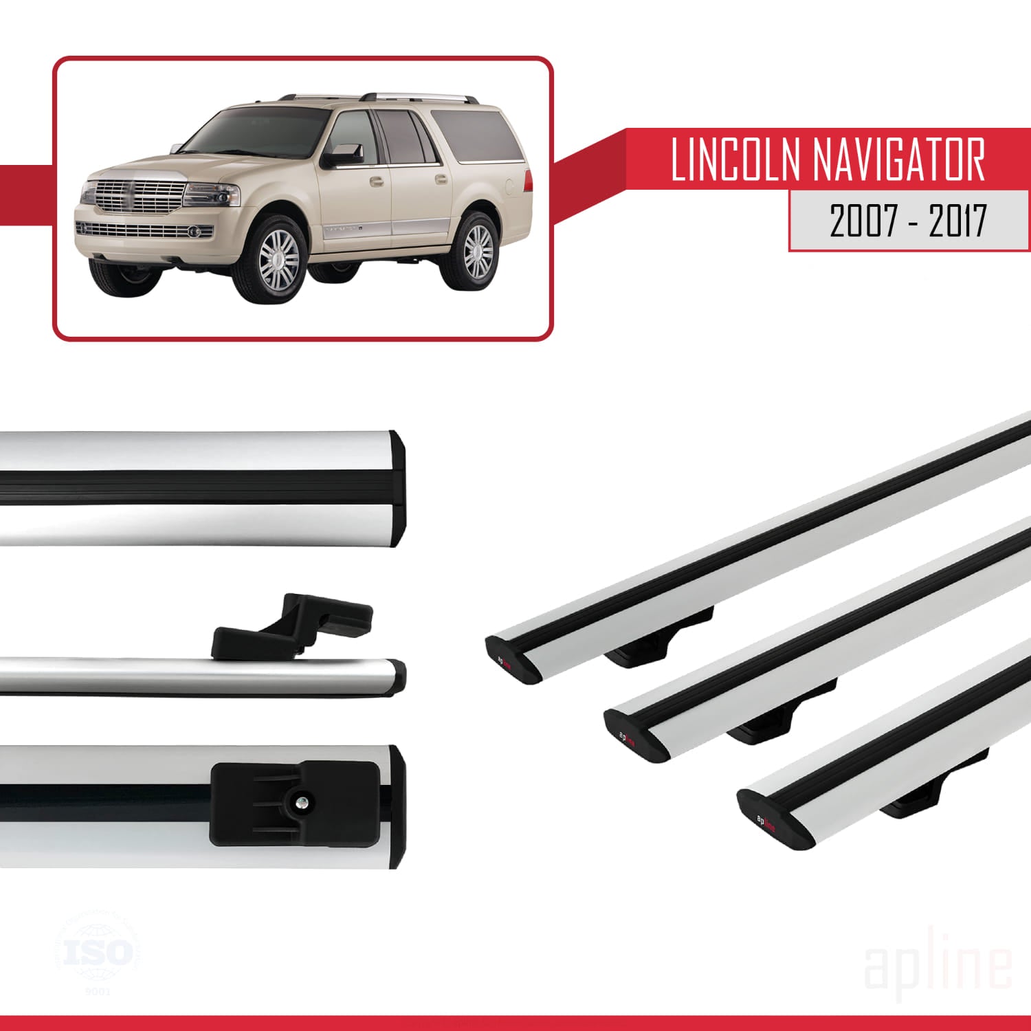 Compatible avec Lincoln Navigator 2007-2017 BASIC Model Barres de Toit Railing Porte-Bagages de Voiture Gris Aluminium 3 Barres