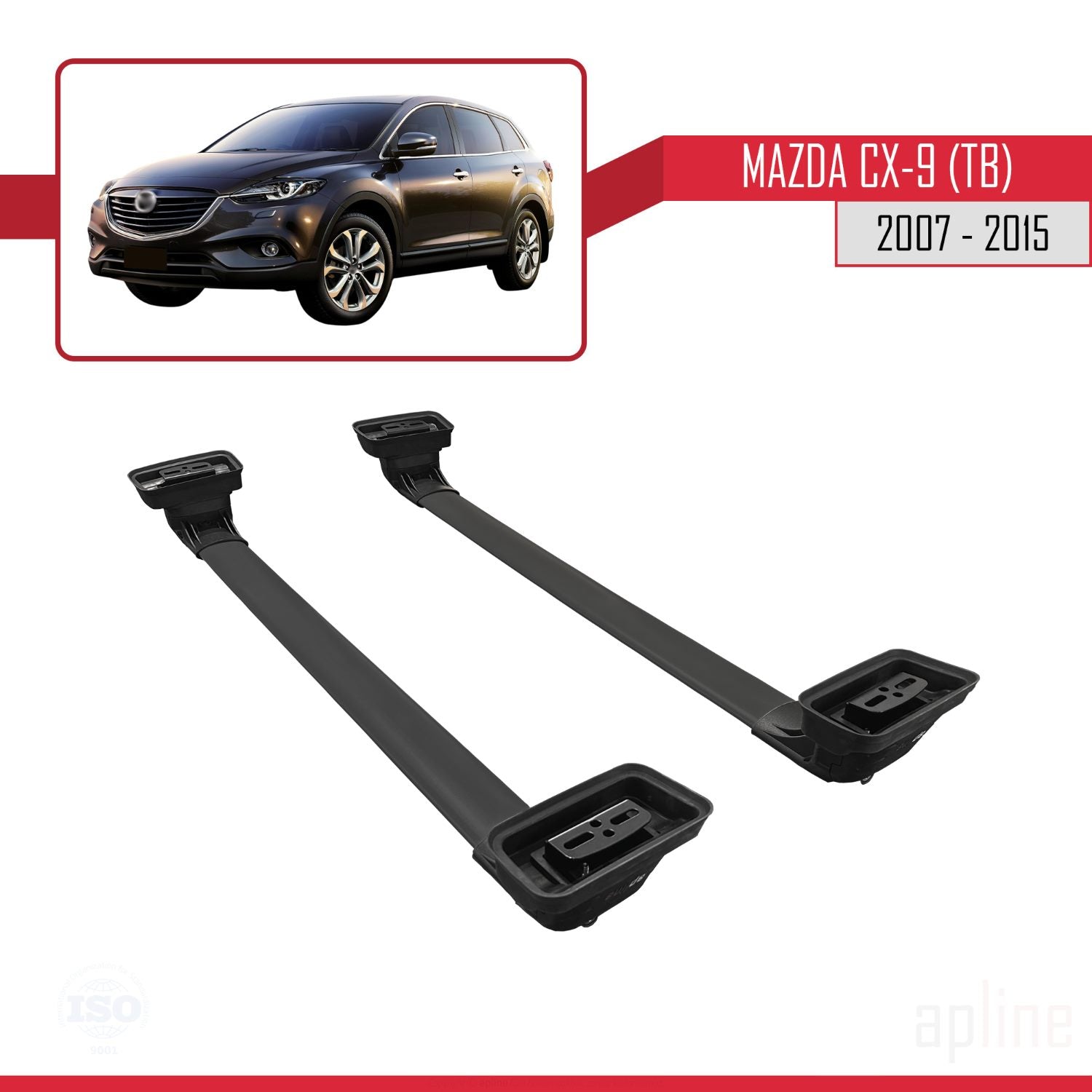 Compatible avec Mazda CX-9 (TB) 2007-2015 ACE-3 Barres de Toit Railing Porte-Bagages de Voiture Noir Aluminium 2 Barres
