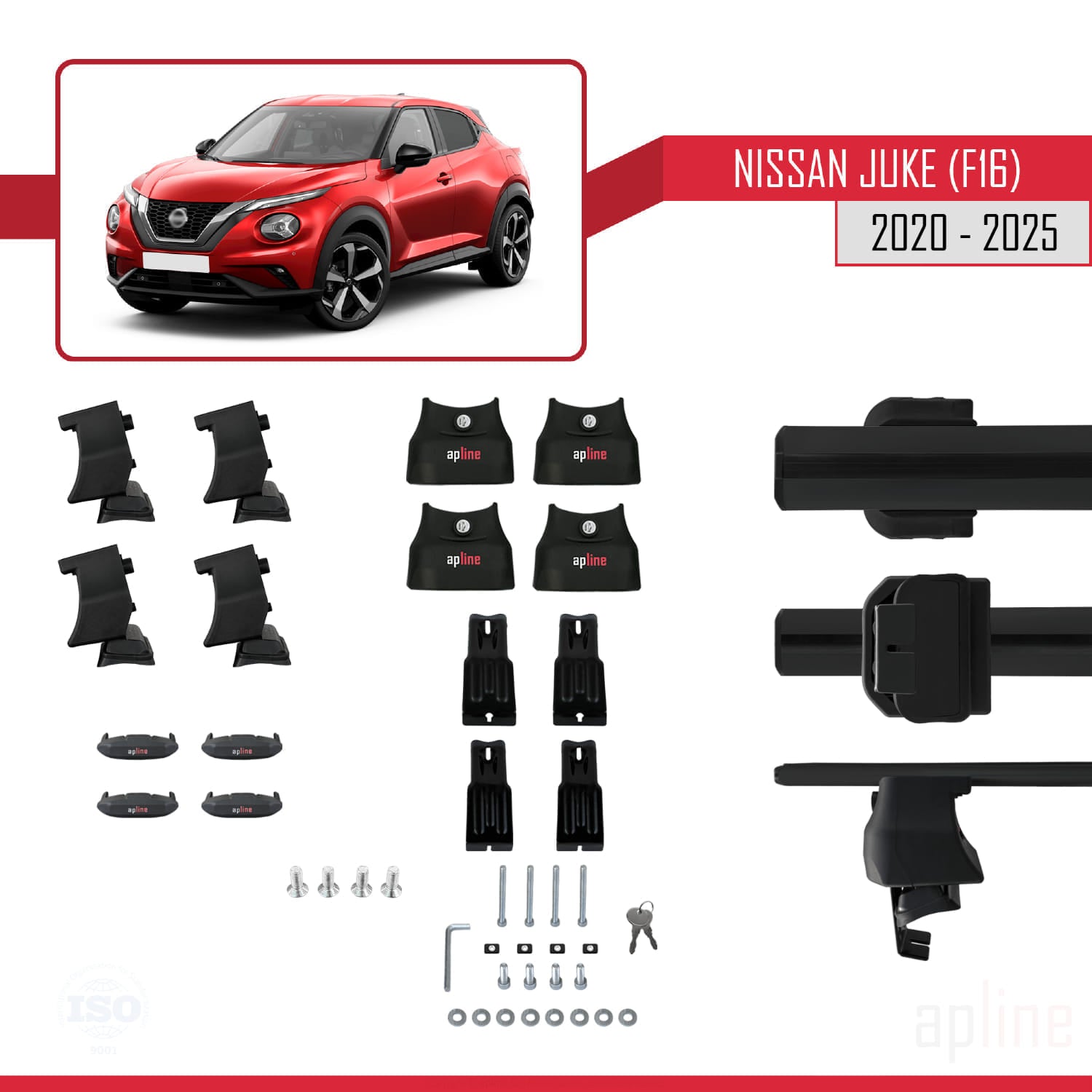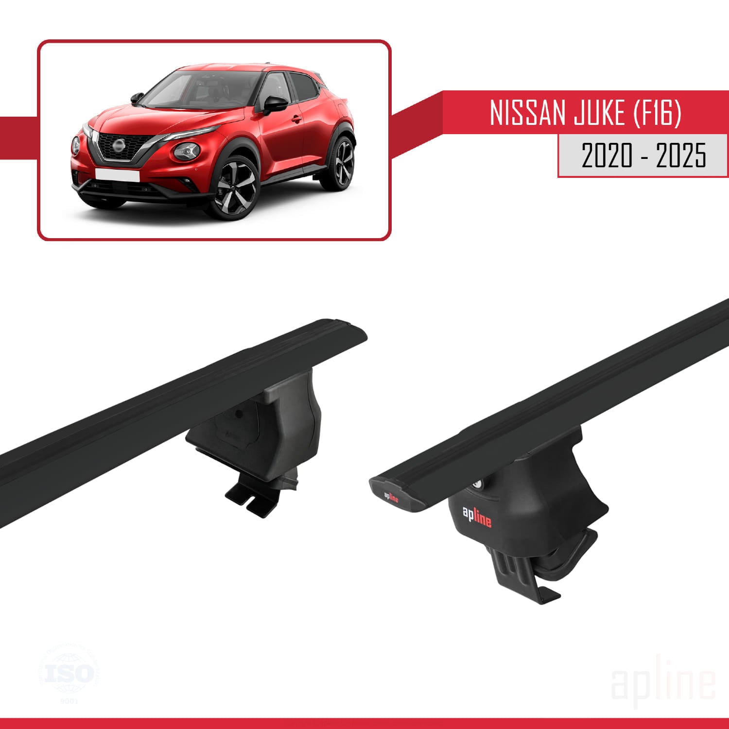 Compatible avec Nissan Juke 2 (F16) 2020-2025 ACE-4 Barres de Toit Railing Porte-Bagages de Voiture Noir Aluminium 2 Barres