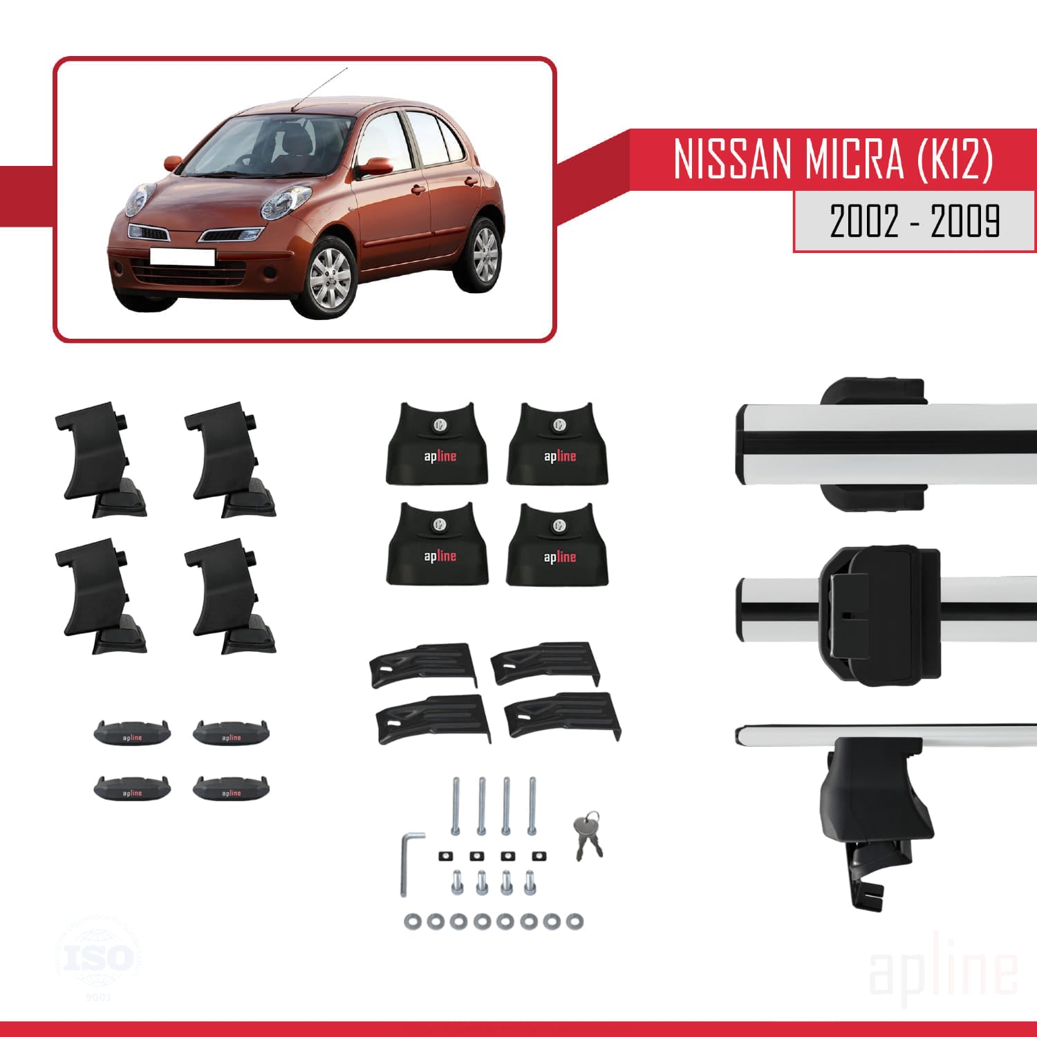 Compatible avec Nissan Micra 3 (K12) 2002-2009 ACE-4 Barres de Toit Railing Porte-Bagages de Voiture Gris Aluminium 2 Barres