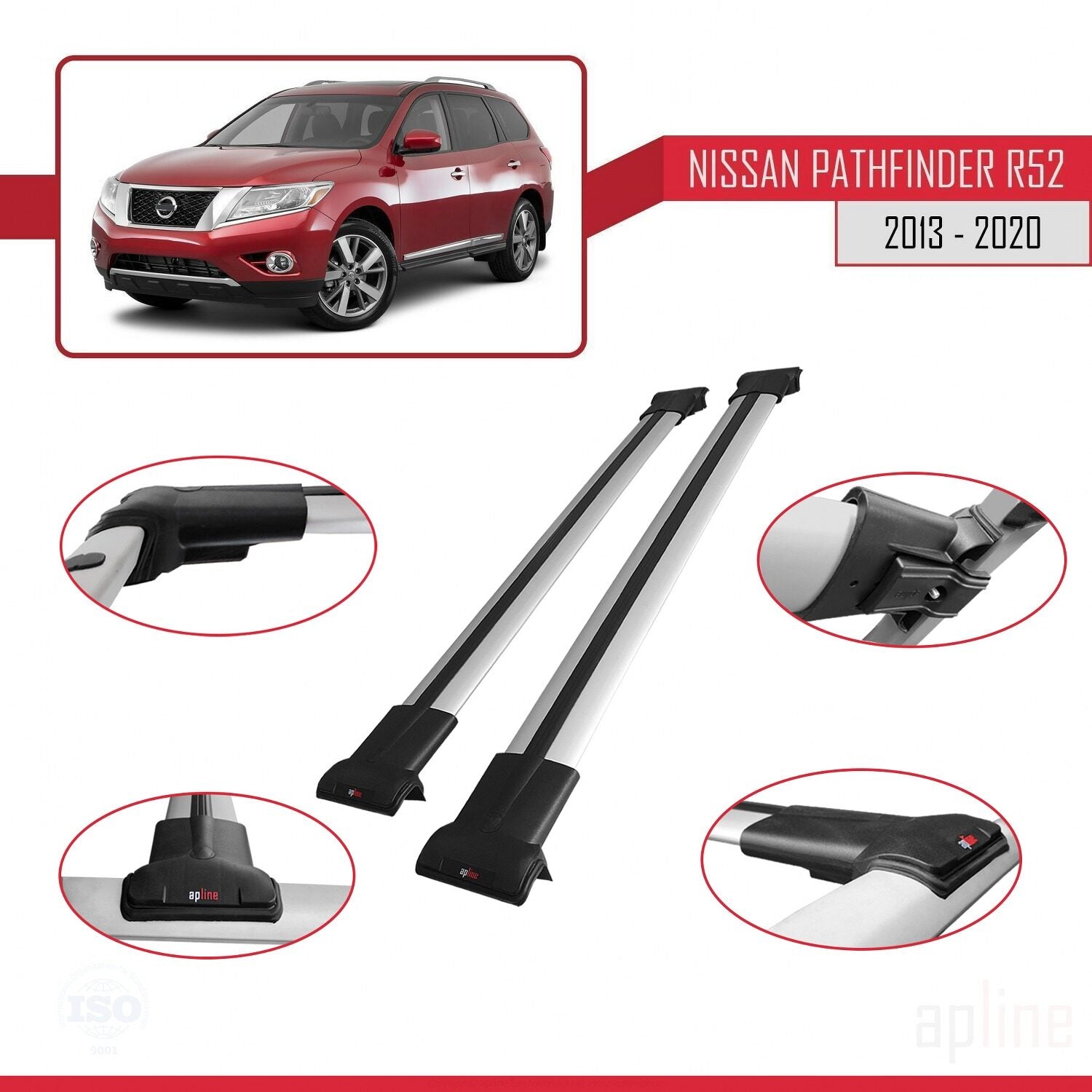 Compatible avec Nissan Pathfinder 4 (R52) 2013-2020 FLY Model Barres de Toit Railing Porte-Bagages de Voiture Gris Aluminium 2 Barres