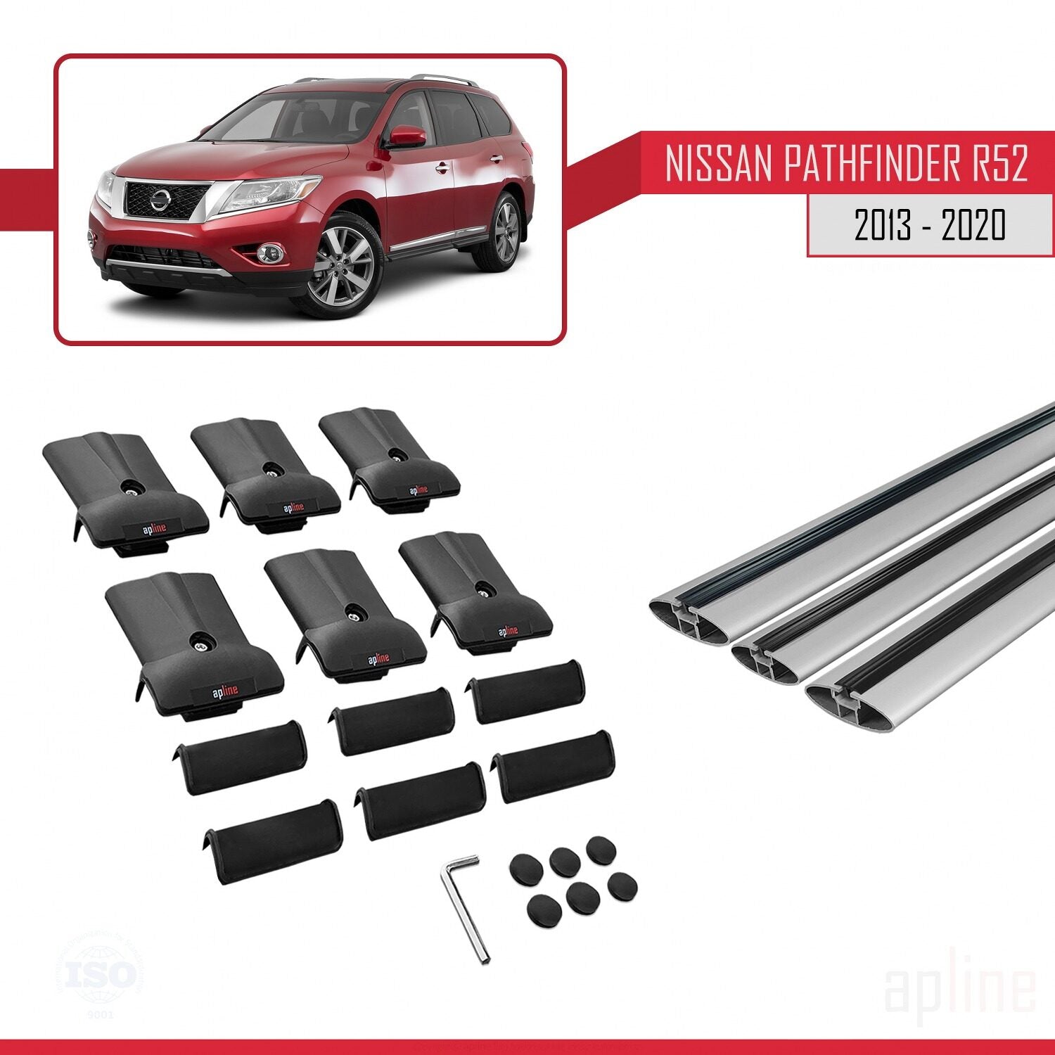 Compatible avec Nissan Pathfinder 4 (R52) 2013-2020 FLY Model Barres de Toit Railing Porte-Bagages de Voiture Gris Aluminium 3 Barres