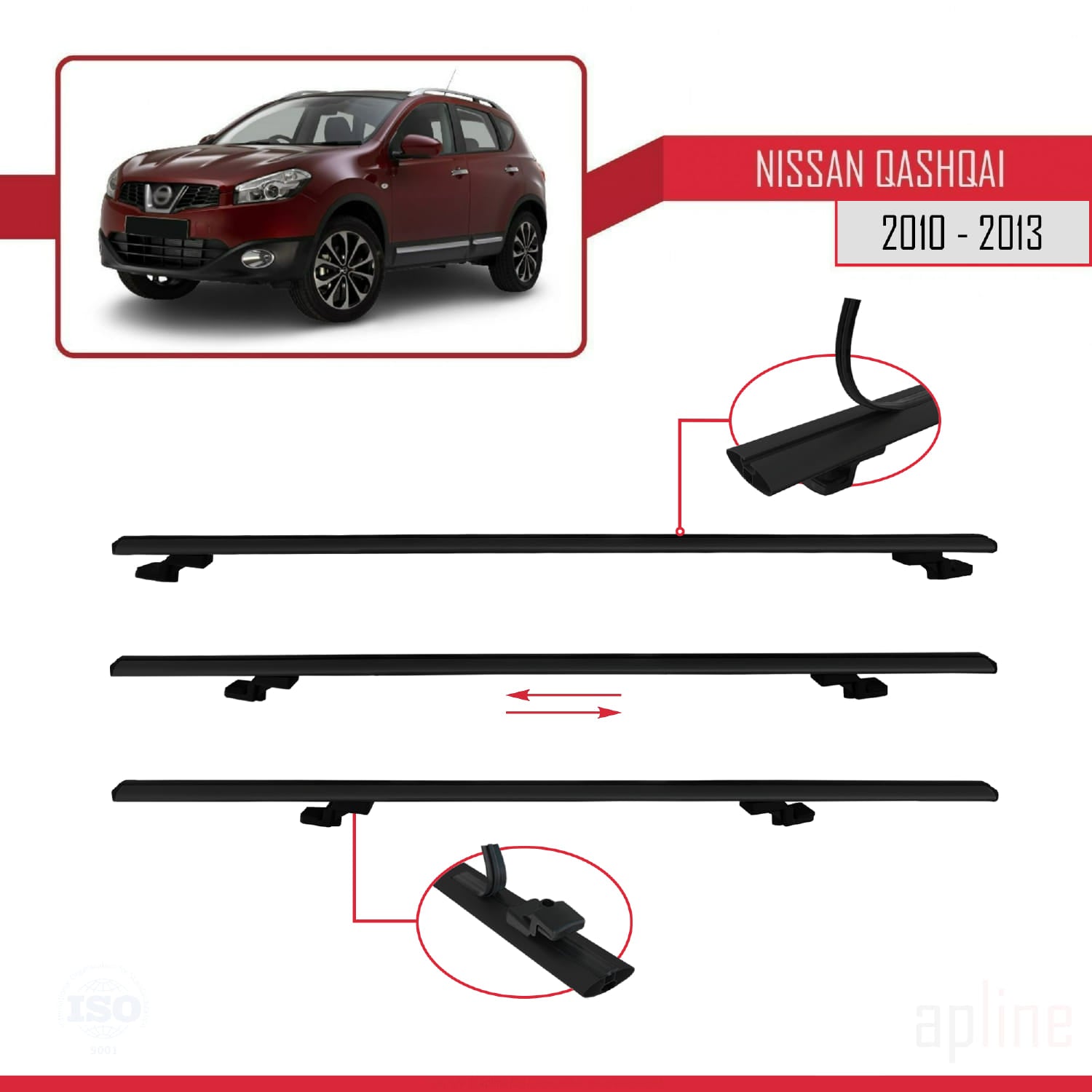 Compatible avec Nissan Qashqai (J10) Post-Facelift 2010-2013 BASIC Model Barres de Toit Railing Porte-Bagages de Voiture Noir Aluminium 2 Barres