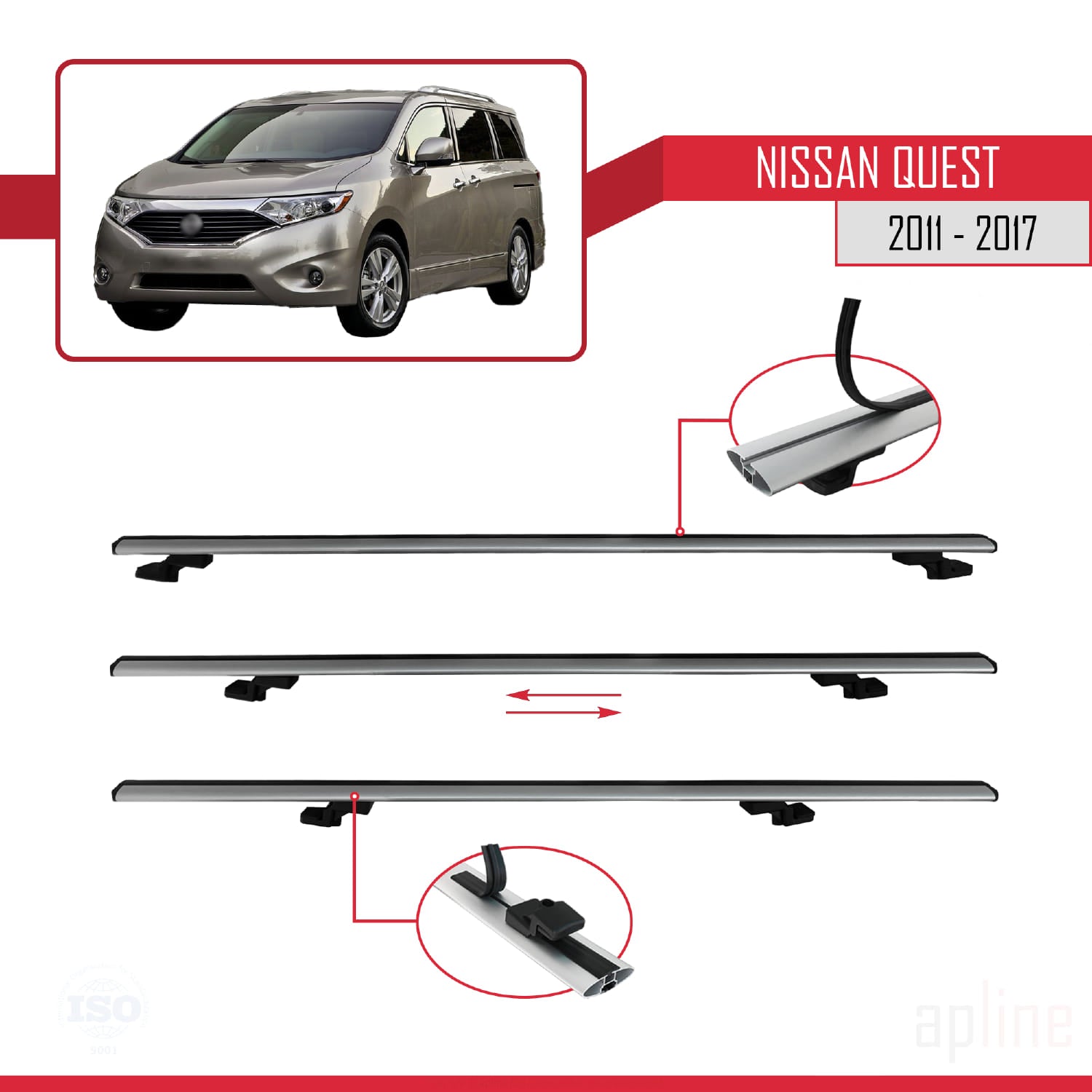 Compatible avec Nissan Quest 2011-2017 BASIC Model Barres de Toit Railing Porte-Bagages de Voiture Gris Aluminium 3 Barres