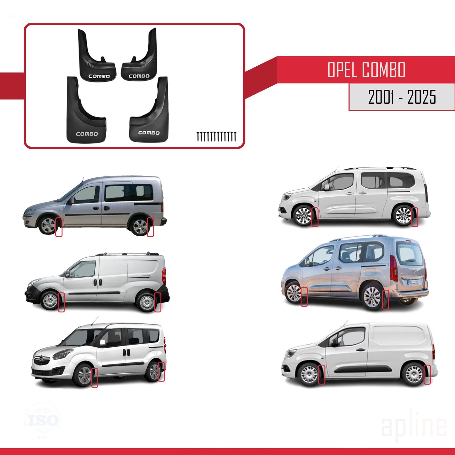 Compatible avec Opel Combo 2001-2025 Jeu de Bavettes Garde-boue Avant et Arrière de Voiture 4 Pcs Noir