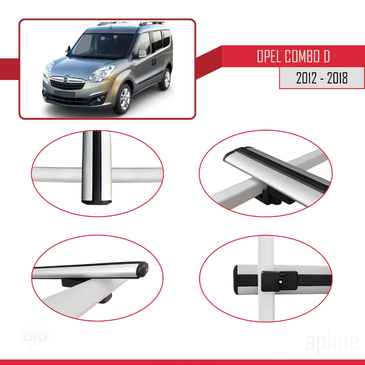Compatible avec Opel Combo D 2012-2018 BASIC Model Barres de Toit Railing Porte-Bagages de Voiture Gris Aluminium 3 Barres