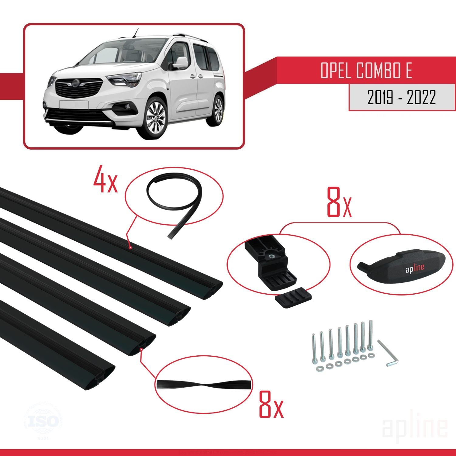 Compatible avec Opel Combo E 2019-2022 BASIC Model Barres de Toit Railing Porte-Bagages de Voiture Noir Aluminium 4 Barres