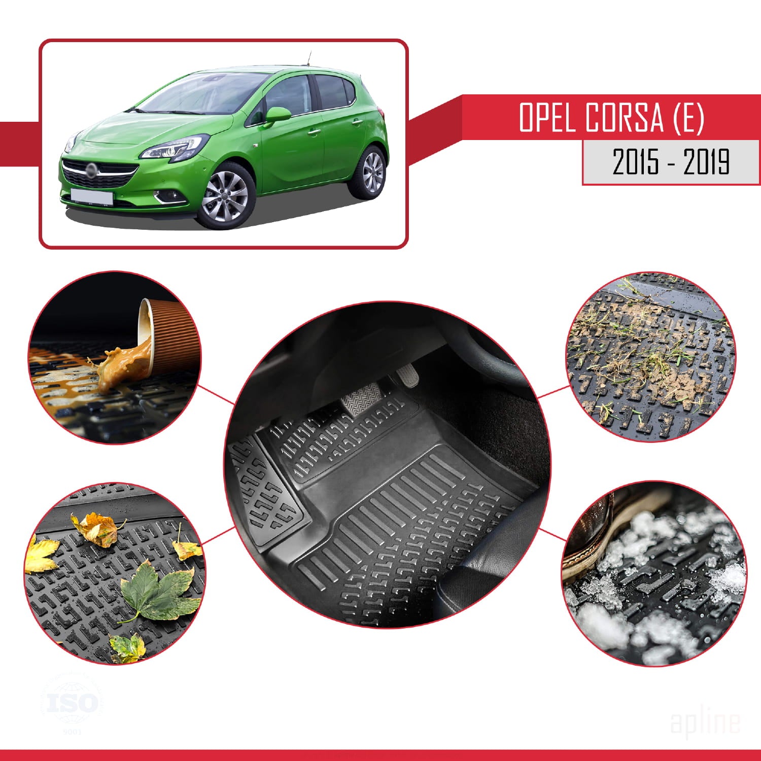 Compatible avec Opel Corsa E (X15) 2015-2019 4D Tapis de Voiture Noir