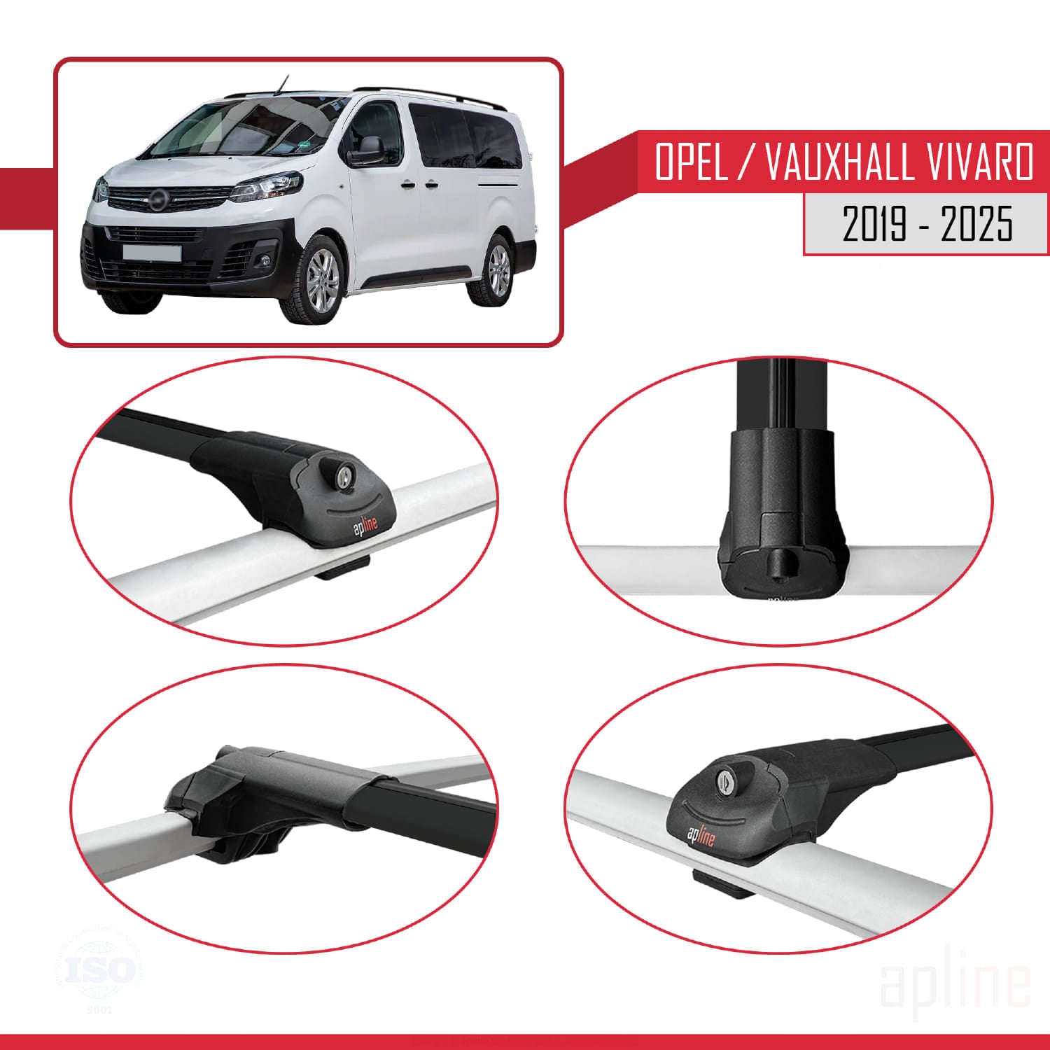 Compatible avec Opel Vivaro C 2019-2025 ACE-1 Barres de Toit Railing Porte-Bagages de Voiture Noir Aluminium 2 Barres